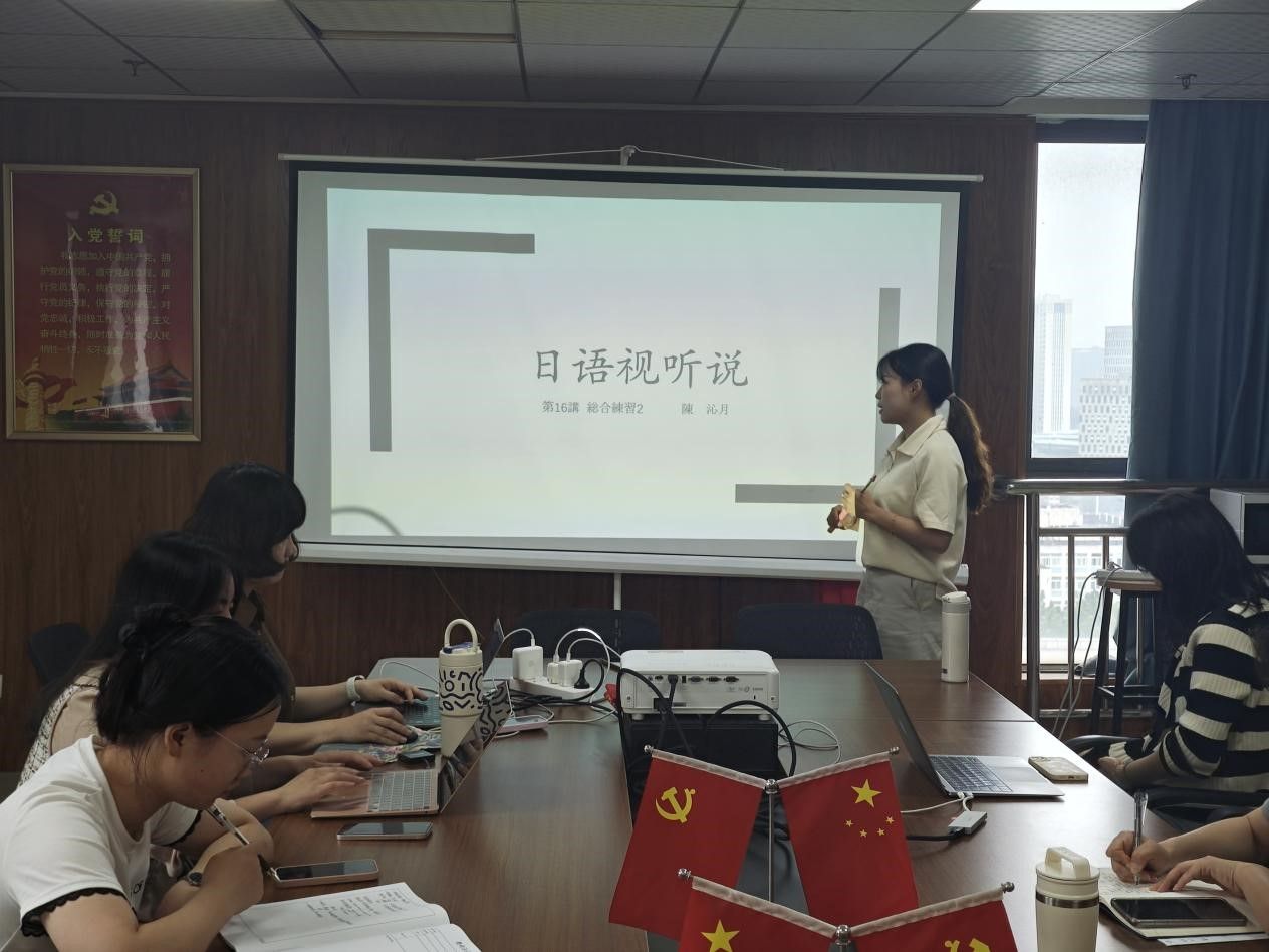 2025年5月15日,外国语学院英语系在综合楼1102会议室继续开展了磨课活动。此次磨课活动中,朱姗姗、彭姚、陈沁月三位老师分别就英汉笔译课程、教育学原理课程、日语视听说课程进行了精彩的教学展示,展开了深度交流和研讨,为提升课程质量全力以赴。