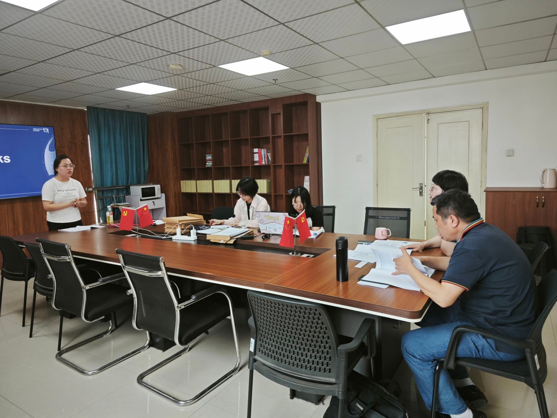 本次答辩小组成员由外国语学院的资深教师组成,包括白燕琴副院长、黄泽云副教授、董妍奇老师和宋怡晓老师。参与此次答辩的学生共 9 人,他们都进行了充分的准备,在答辩过程中较好地展示了对自己毕业论文内容的理解。