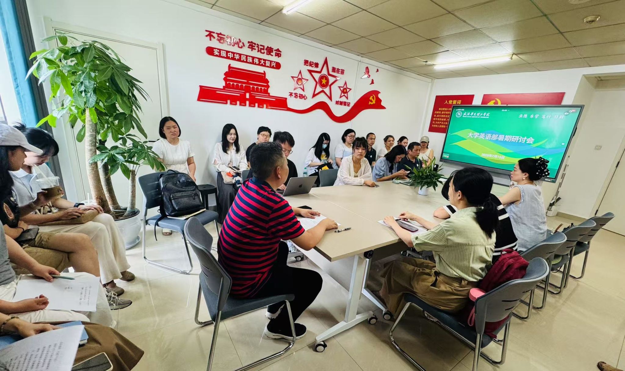 为响应学校2025年暑假教育教学工作研讨会的号召,深入推进本科教学工作合格评估,凝聚教学改革共识,7月15日下午2点半,外国语学院大学英语部在1110会议室召开暑期研讨会。本次会议由副院长兼大学英语部主任曹勇波主持,大英部全体教师参会。