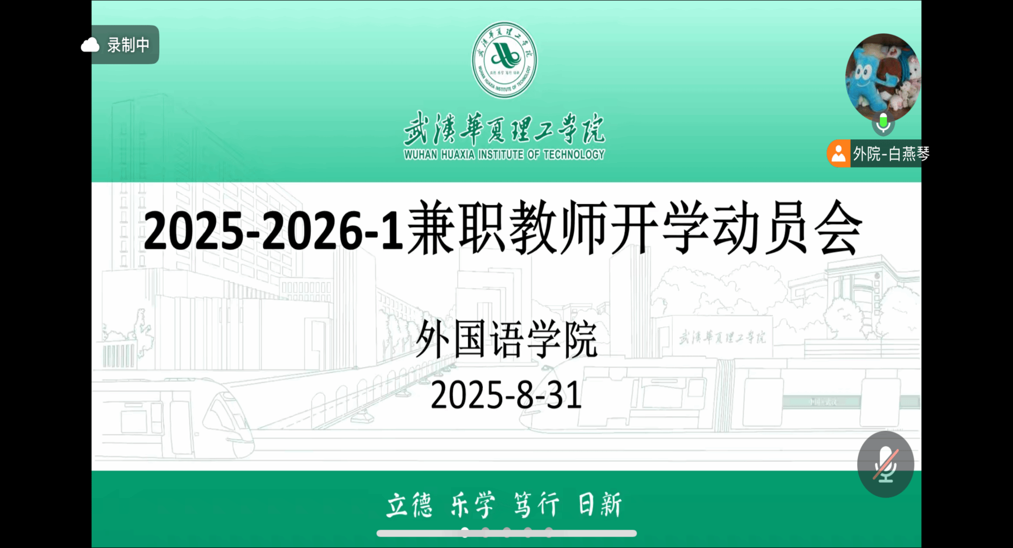 2025年8月31日上午10时,beat365官方网站外国语学院通过线上方式成功召开了2025-2026学年第一学期兼职教师开学动员会。会议由外国语学院教学副院长白燕琴主持,各系部主任及全体兼职教师参加了会议。