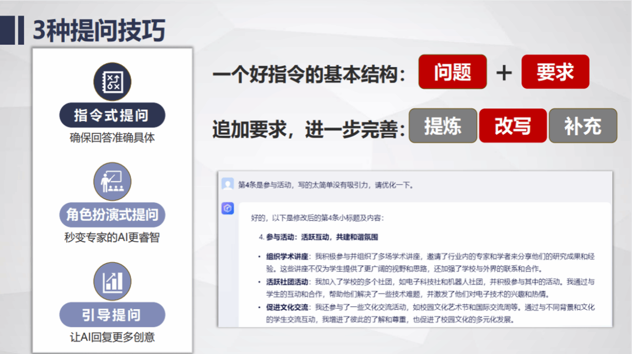 为了帮助系部教师更好地理解和应用AI技术,推动AI赋能教育教学改革,商务英语系于12月9日晚20:00进行了一次线上AI辅助教学与办公的分享会。分享会由王春艳老师主讲,商英系全体教师参加会议。