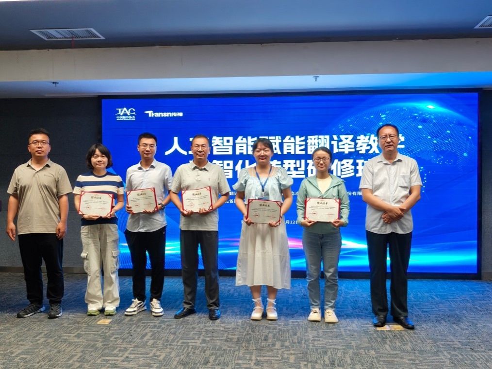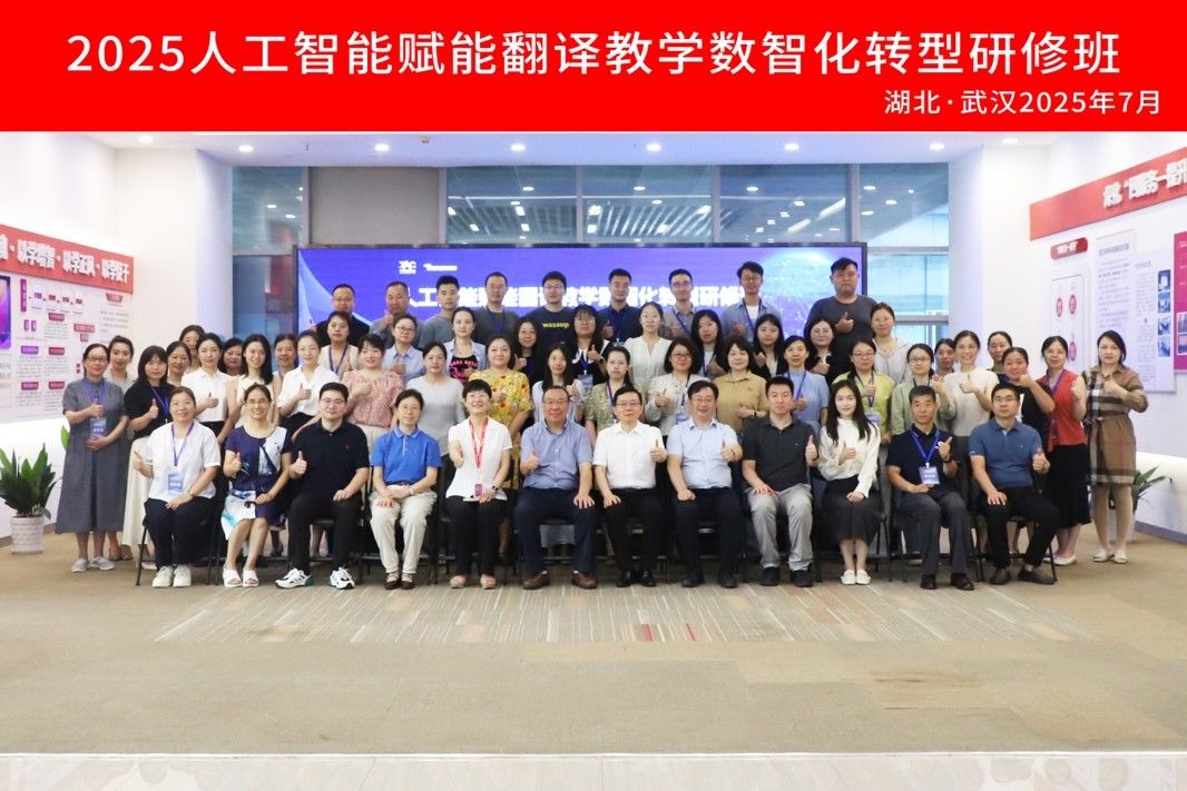 为深入学习人工智能技术在翻译教学中的应用,推动翻译课程的数智化建设与改革,2025年7月12日至13日,我院英语系教师参加了由中国翻译协会主办,传神语联网网络科技股份有限公司承办,湖北省翻译工作者协会协办的“人工智能赋能翻译教学数智化转型研修班”。本次研修班在湖北武汉举行,来自全国多所高校的翻译教学一线教师齐聚一堂,围绕人工智能赋能翻译教学的前沿理念与实践路径开展深入学习与交流。