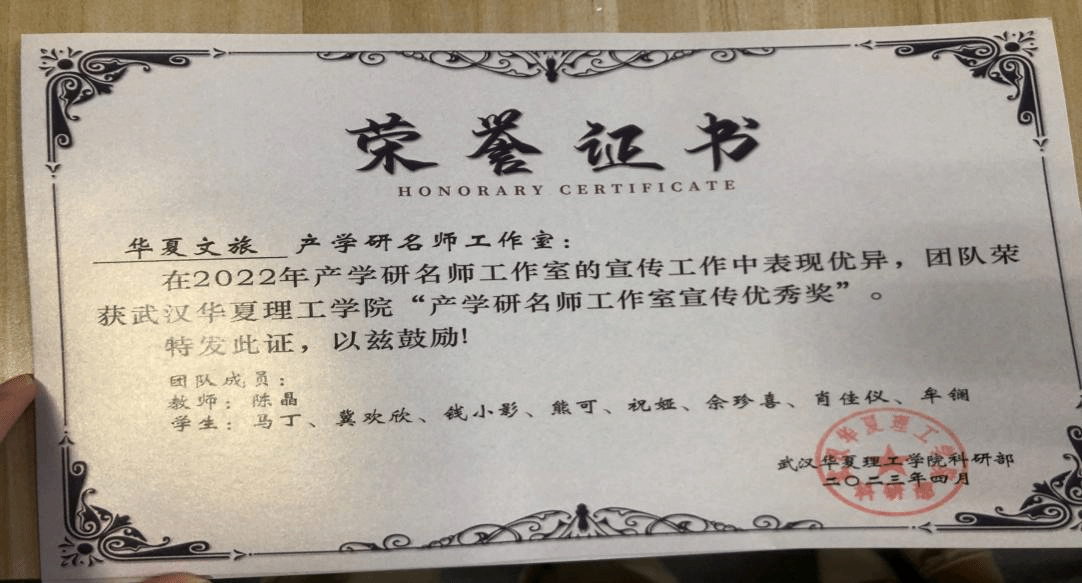 2023年5月16日华夏文旅工作室在国才中心办公室召开了工作室表彰大会。此次会议由华夏文旅工作室负责人陈晶老师和学生负责人冀欢欣,佘珍喜共同主持。工作室其余成员悉数参加,共同庆祝华夏文旅工作室获得优秀宣传奖及工作室成员获产学研奖学金。