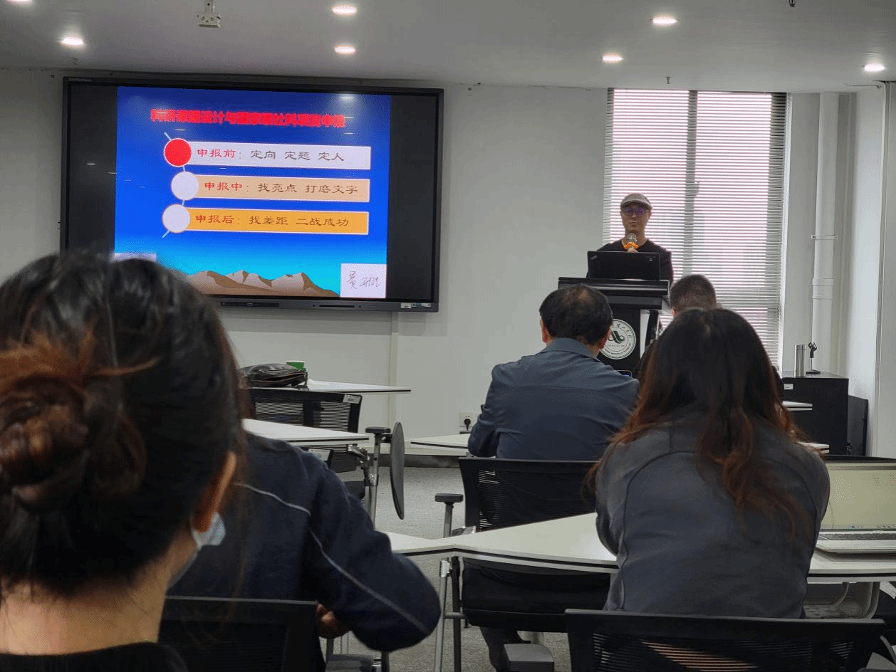 国家社科基金和教育部人文社科基金项目不仅要求研究者对某一学科领域具有深厚的学术积累、创新的选题和严谨的课题设计,而且需要对申报书进行细致的解读和反复的文字打磨。讲座中,黄开胜教授首先介绍了国家级社科项目研究类型、申报类别以及每类项目申报的基本要求,然后从选题和申报书的撰写方面重点讲解了国家级社科项目申报准备关键点和申请书填写注意事项。他强调选题至关重要,选题要新颖、明确,要能够聚焦时代和学术前沿,突显价值,找亮点;选题要有一定的研究基础,清楚选题的创新点,有明确的研究思路。在项目申报书的撰写中,题目一定要新颖、简明、规范,文献综述要准确、有评述,研究思路要清晰可行,文本书写要打磨文字,语言精炼美观,参考文献要有代表性、权威性。最后,他强调,在项目申报上,要注意积累,不断提高申请书撰写能力,坚持各类项目通报,多与人沟通探讨,反复修改打磨,最终目标是写出自己满意的申报书。