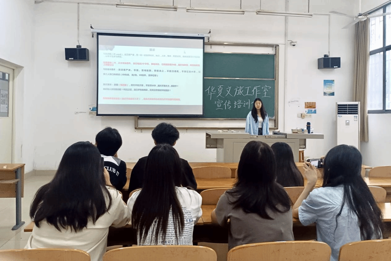 为了增强宣传部门成员的撰文水平,华夏文旅工作室于2024年6月27日在教学楼2-104召开新闻稿撰写宣传培训会。会议由工作室学生负责人梁金妮主持,宣传部门成员参与此次培训会。