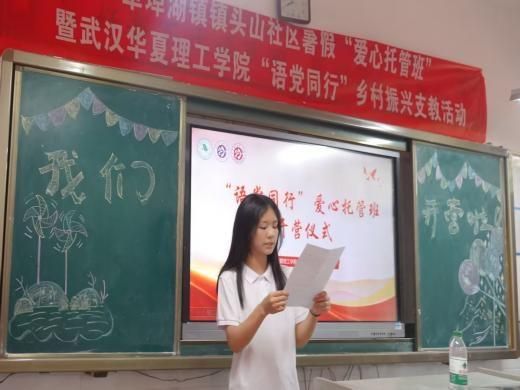 暑假期间,华夏语言教育工作室成员邓依璐,以外国语学院“语党同行”乡村振兴志愿服务团学生负责人的身份,积极参与了湖北省当阳市草埠湖镇“爱心托管班”七彩假期志愿服务活动,用实际行动为乡村教育添砖加瓦。