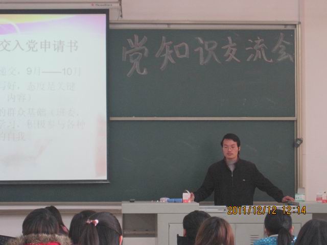 12月12日中午12:10,教学楼1-104正开展着党知识交流会。