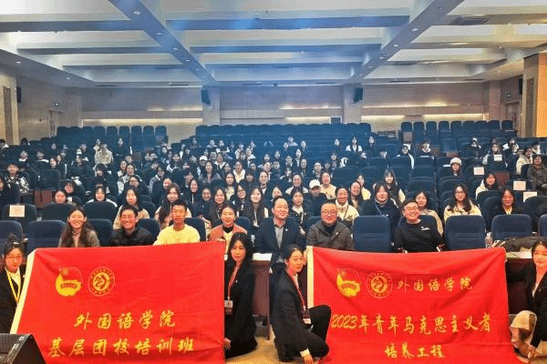 首先,校团委书记张勇老师致辞,指出实施青年马克思主义者培养工程、基层团校培训班的重要性;接着,外国语学院学工办主任、团总支书记杨洋老师宣读《关于2022年“青马工程”暨基层团校优秀学员表彰的决定》;外国语学院党总支组织员陈卓老师宣读《关于2023年青年马克思主义者培养工程培训班学生干部任命的决定》和《关于2023年基层团校培训班学生干部任命的决定》;外国语学院团总支副书记贾佳老师宣读《培训纪律要求》;外国语学院2020级辅导员龚飞老师宣读《优秀学员评选办法》。