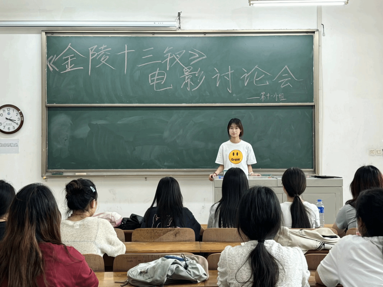 整部影片始终贯穿着大爱、救赎、救国的主题。同学们为女学生们的纯真善良所感动,为革命先烈奋不顾身舍生取义的表现所感动,为国际友人乔治舍己救人的精神所感动,为“金陵十三钗”的美丽、善良、勇敢所感动。通过此次讨论会,同学们纷纷进一步明确了未来的奋斗目标,深刻意识到弱国无外交,我们青年一代当自强。作为当代大学生置身于来之不易的和平发展的大环境中,置身于宽敞明亮的教室中,要深刻认识到世界上局部地区动荡因素依然存,祖国的和平发展来之不易,同学们未来要树立正向价值观,积极面对大学生活,牢记历史使命和时代责任,弘扬社会正气,为新时代中国特色社会主义的发展贡献自己应有的力量。