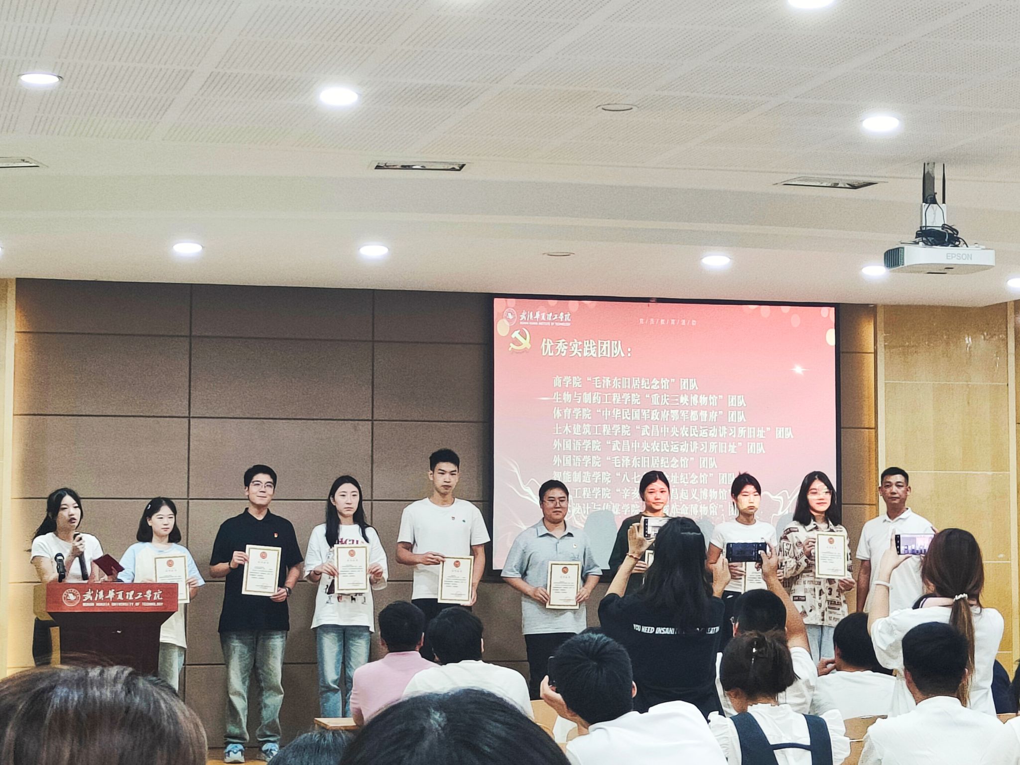 为表彰在红色社会实践活动和优秀红色精神宣讲活动中表现突出的团队与个人,beat365党员服务站于6月21日中午在2-201举行了表彰大会。我院党员服务站凭借宣讲“毛泽东旧居纪念馆”和“武昌农民运动讲习所”旧址的两个优秀作品被授予了“优秀实践团队称号”。同时,英语1223班周程程同学凭借其在延安精神宣讲汇报中的出色表现,荣获优秀主讲人称号。