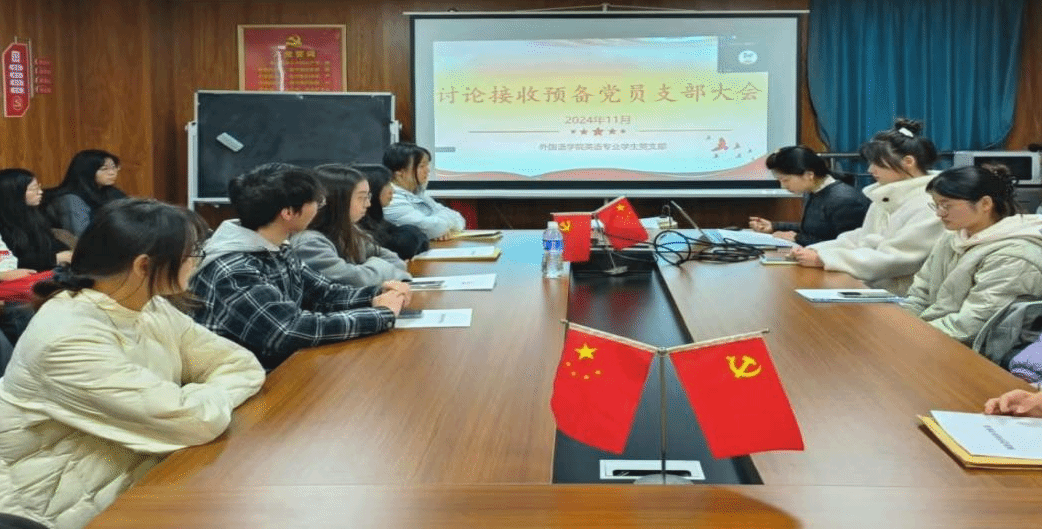 11月28日,外国语学院英语专业学生党支部全体成员于综合楼1102开展了讨论接收赵诗钰等4名发展对象为预备党员的支部大会。