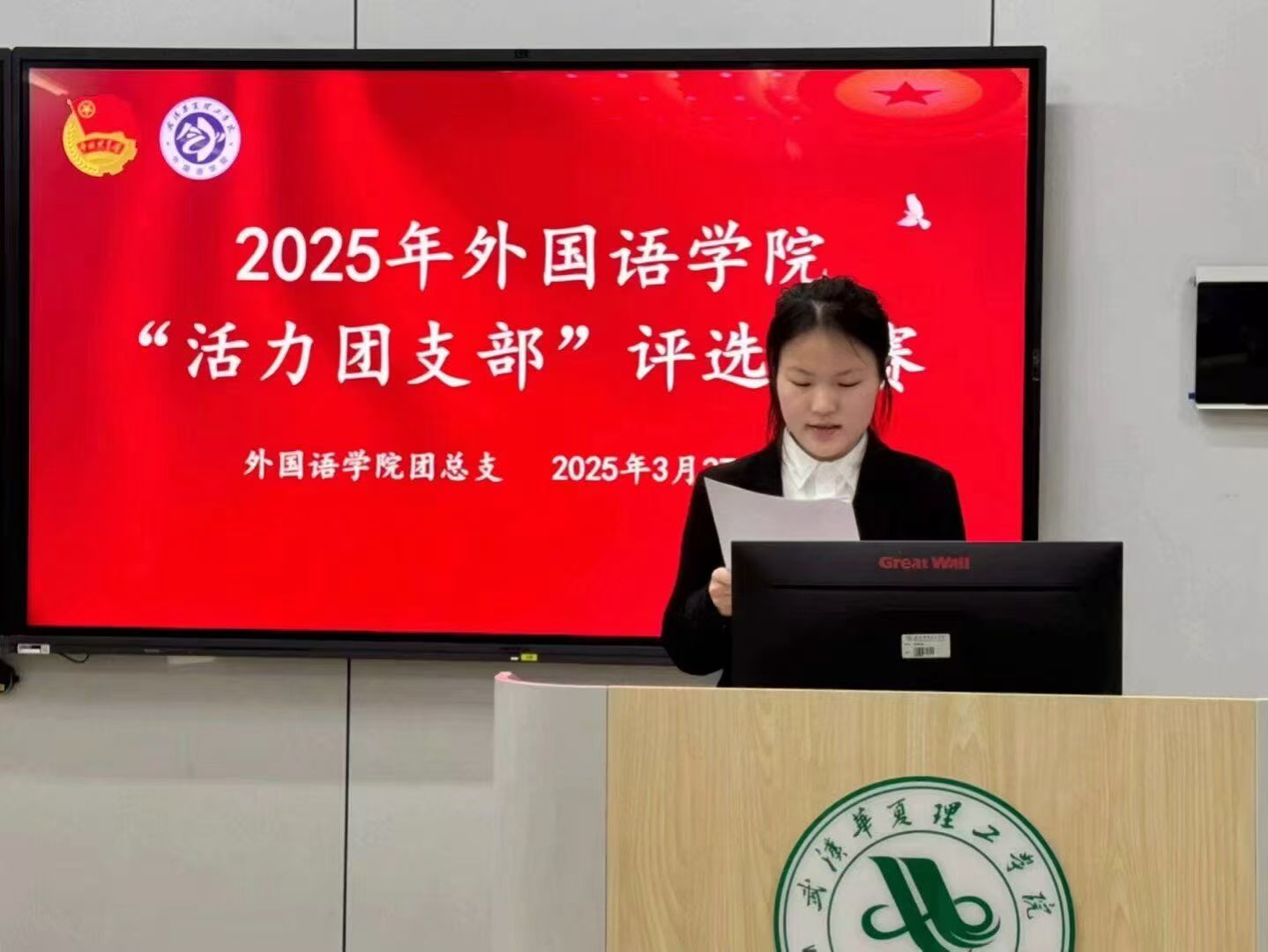 为深入学习贯彻党的二十大精神,教育引导广大团员坚定不移听党话、跟党走,我院2025年“活力团支部”复赛评选活动特于3月27日12:20在2-207成功举办。本次活动由组织部干事丰奕鑫主持,出席此次活动的评委嘉宾有外国语学院学工办主任陈卓老师,团总支书记王欣佳老师,大四辅导员龚飞老师,团总支学生副书记许静茹、韩昕菲。以及2023级团干和2024级全体班委。
