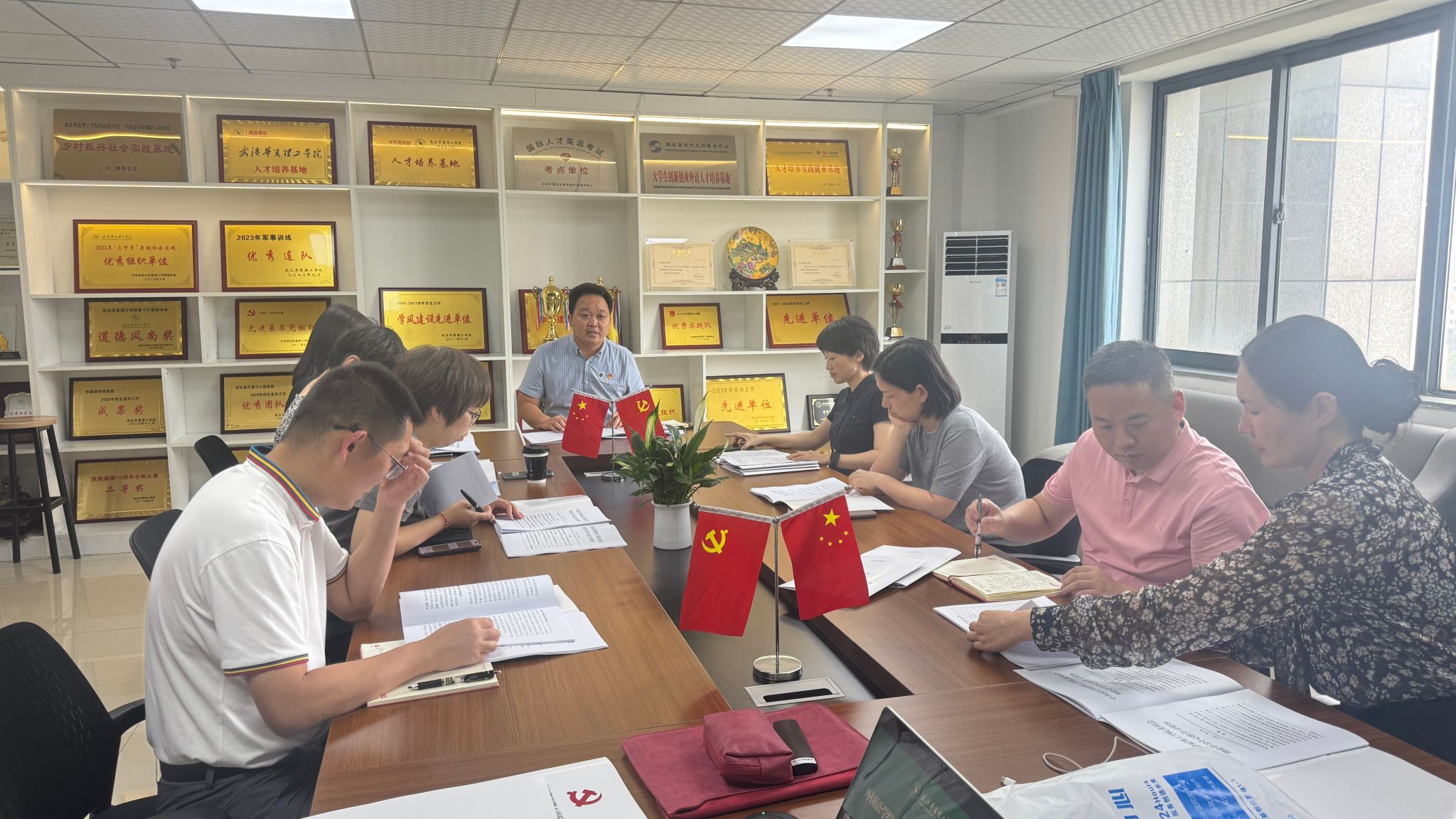 此外,会议全面通报了党建、教学、学工、就业等相关工作开展情况。在党建工作方面,总结了近期主题党日活动和党员发展工作成效;教学工作围绕课程改革、教学质量提升进行汇报;学工工作聚焦学生思想动态、心理健康教育等内容;就业工作则详细分析了当前就业数据及存在问题。通过此次通报,中心组成员对学院整体工作有了更清晰的认识,为后续工作协同推进奠定基础。