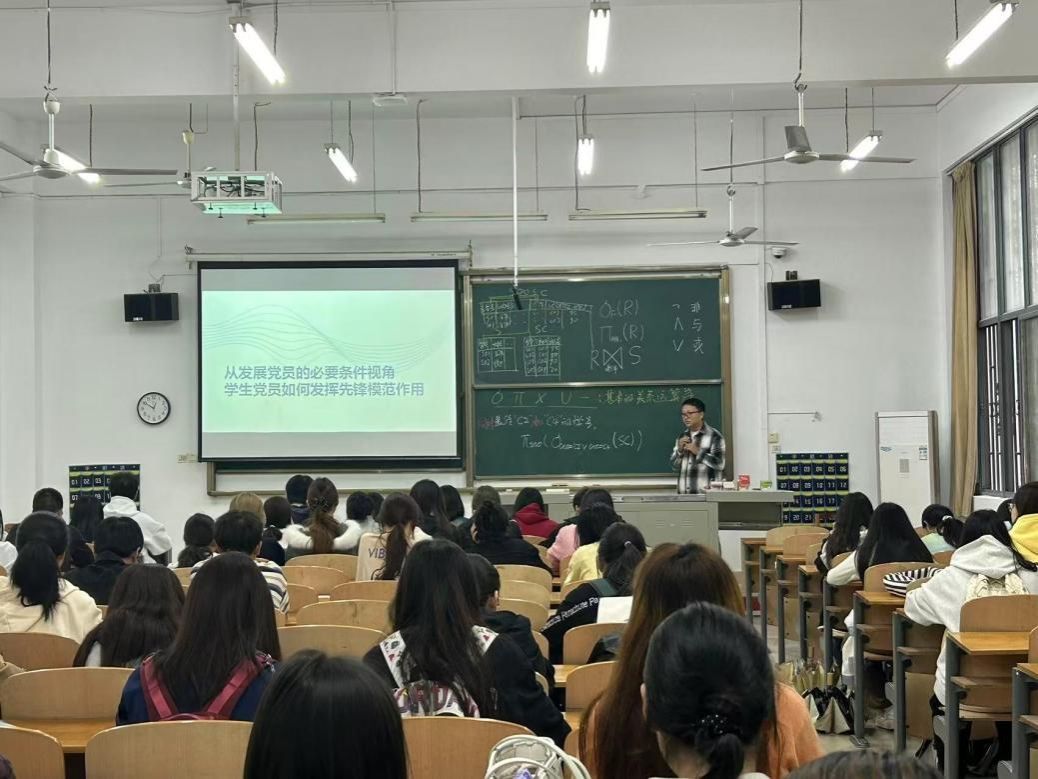 最后,陈卓老师还强调,学生党员需要在思想政治工作中成为骨干力量,能够积极参与校园思想政治教育工作,协助党组织做好同学们的思想引导。同时,学生党员也需要贯彻社会实践育人的指导精神,努力投身社会调研活动,紧扣时代需求,将理论学习与实践相结合,以实际行动践行党的宗旨。