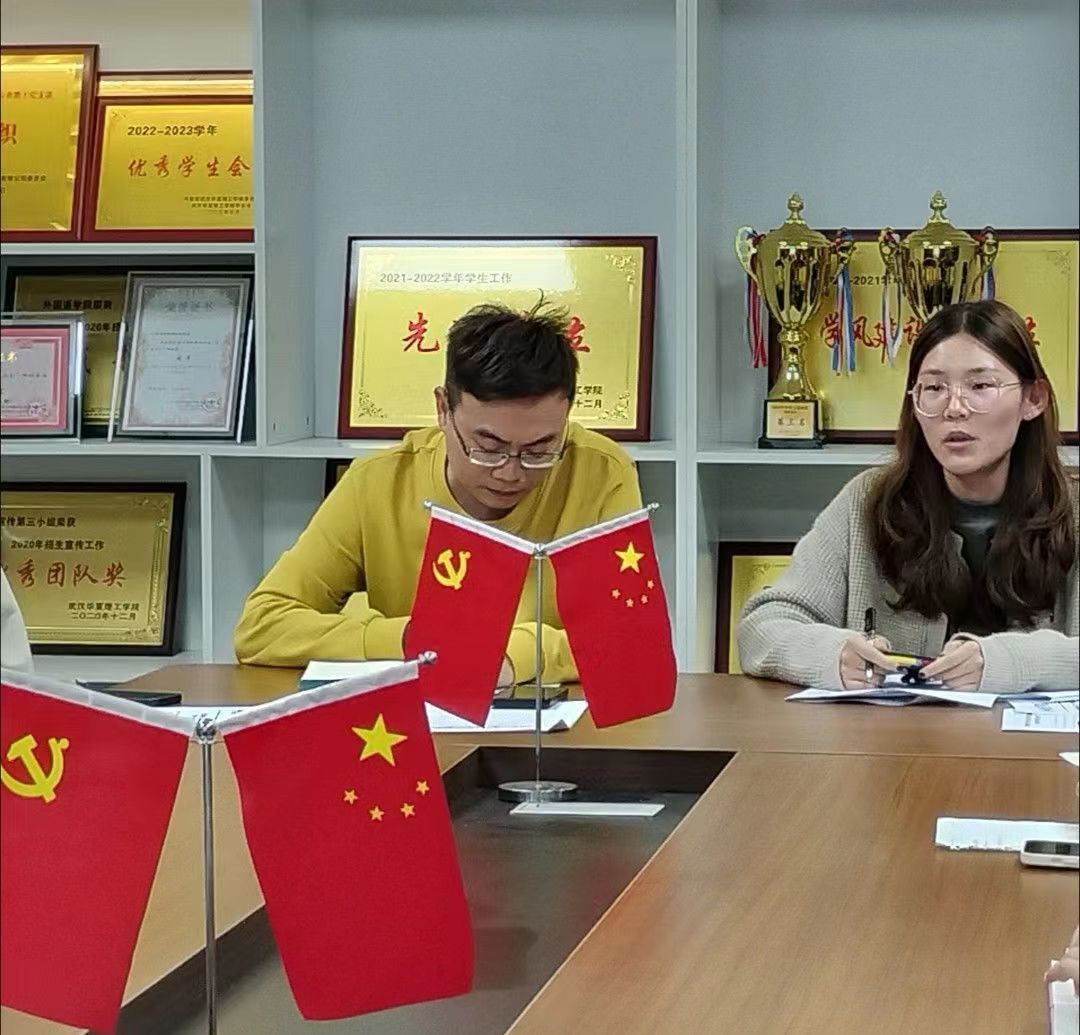 此次会议共分为四个部分。会议第一项,奏唱国歌、团歌。会议第二项,研读习近平同志《论党的青年工作》。学生副书记张连带领大家一起研读《团结带领广大青年在实现中华民族伟大复兴的征途中续写新的光荣》这一篇文章,同时通过阐述自己的见解,让大家更加认识和了解到了共青团的基本工作。杨洋老师结合文章内容和团学组织工作开展情况提出了建议,希望各组织青年干部要做好主题教育,加强政治学习,统一思想,扩大团工作的有效覆盖面,提高团的吸引力和凝聚力。会议第三项,各团学组织作近期工作开展情况交流汇报。参加此次会议的团总支组织部、秘书部、融媒体中心、学生会、青年志愿者协会、心理健康协会和青年新声社等各组织负责人依次上台进行汇报。汇报内容主要从已完成、进行中、即将进行的工作开展情况和工作困难四个方面进行详细汇报。会议第四项,指导老师作总结点评。团总支副书记贾佳老师指出此次各组织的工作汇报有条理,展现了大家较强的工作能力。同时,贾佳老师也表示到各组织学生干部要以身作则,认真对待工作,积极乐观生活。杨洋老师针对各组织的工作情况汇报做了总结点评,并提出相关改进建议。