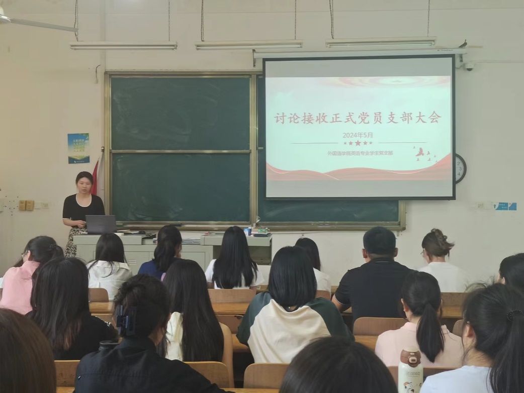 5月12日中午12时40分,外国语学院英语专业党支部全体成员在教学楼1-103召开预备党员转正支部大会。