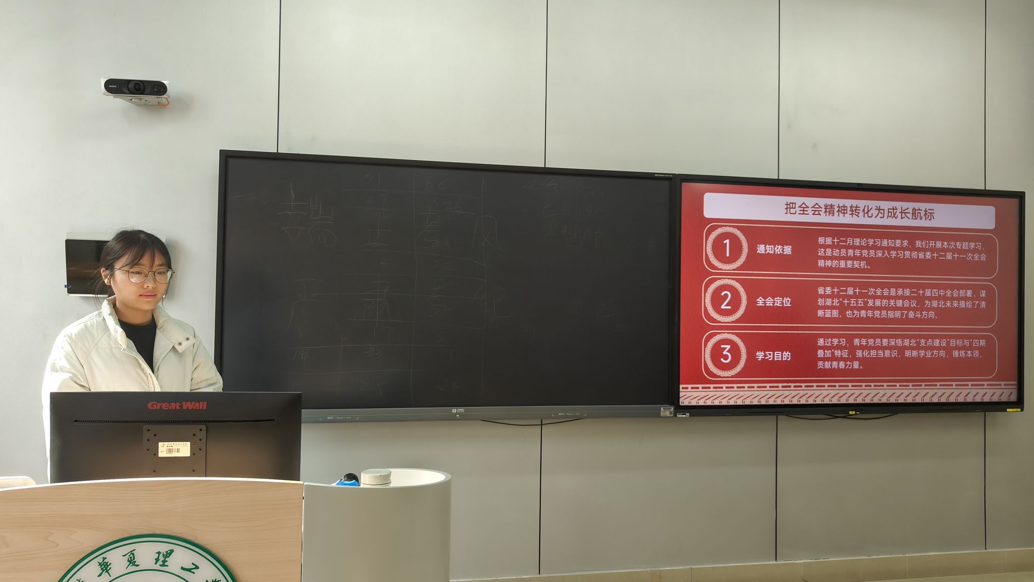 为引导学生党员深刻领会省委十二届十一次全会精神内涵,准确把握湖北“支点建设”目标与“四期叠加”阶段性特征,12月18日中午12:50,beat365官方网站外国语学院党员服务站“国才讲堂”第二十一讲在2-209教室顺利开展。本次讲堂以“学习贯彻省委十二届十一次全会精神”为主题,由23级预备党员——商英1231班陈志娟主讲,英语1237班盛吴丹主持,党员服务站、国才传媒全体成员积极参与。