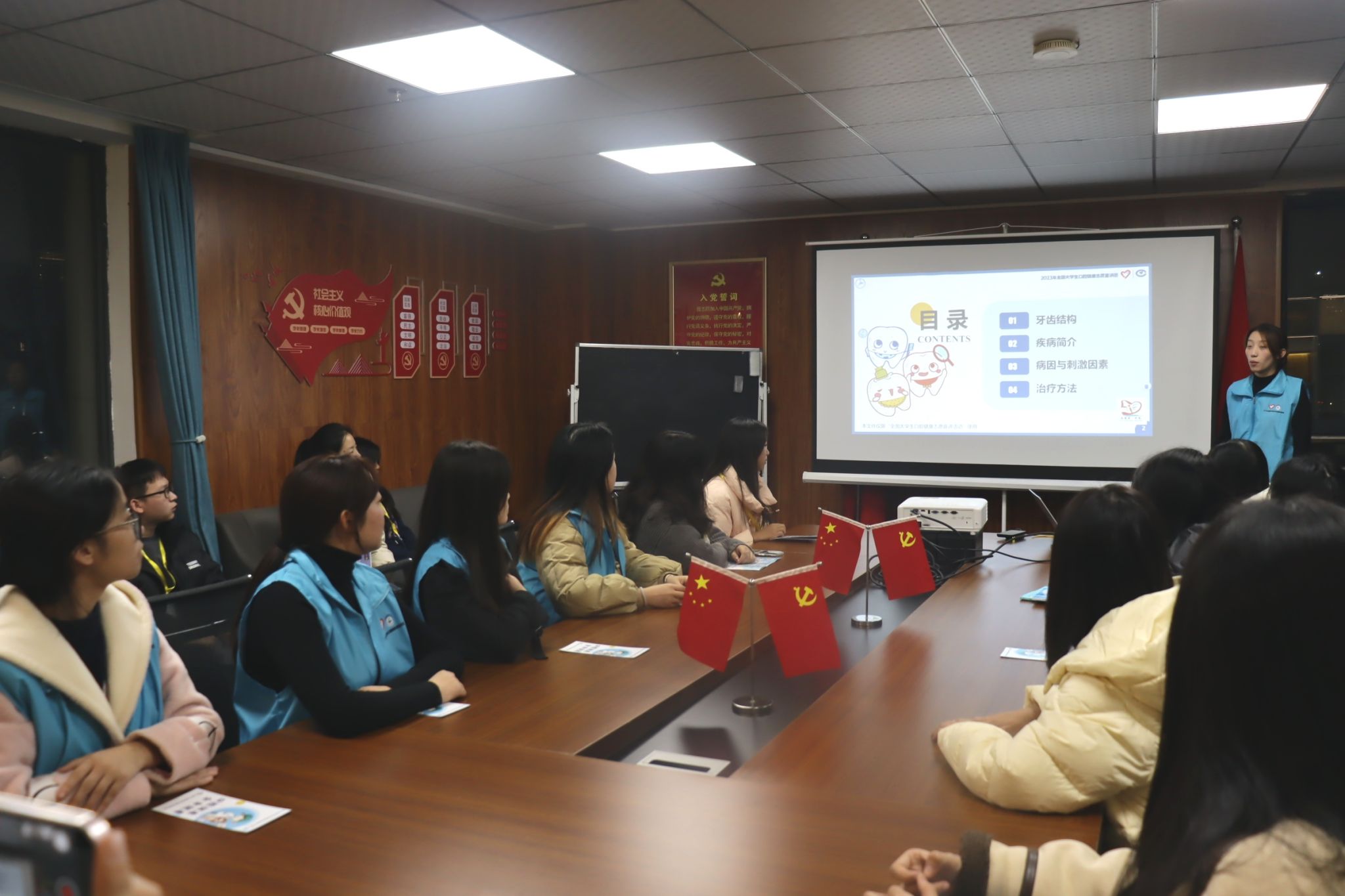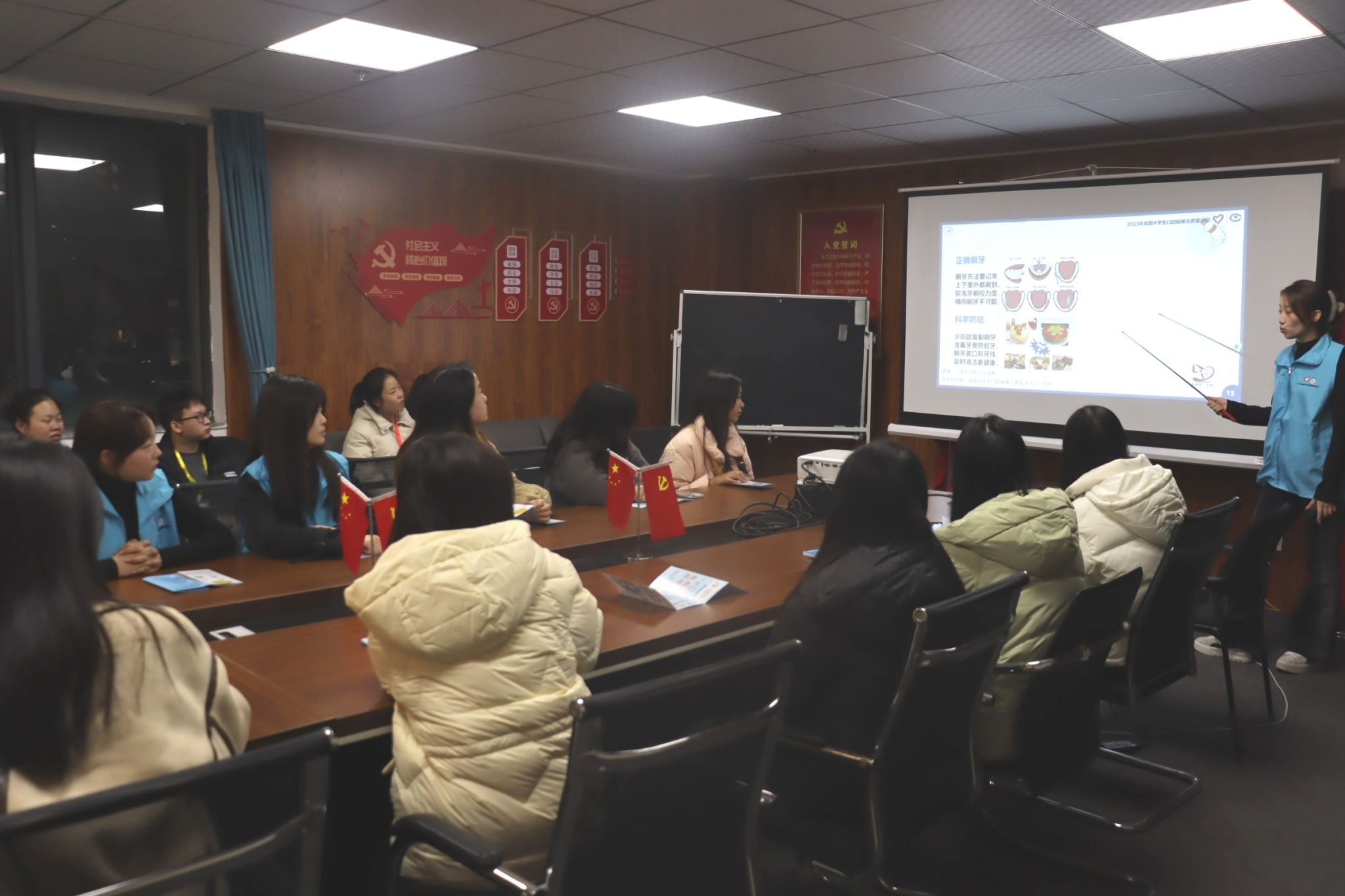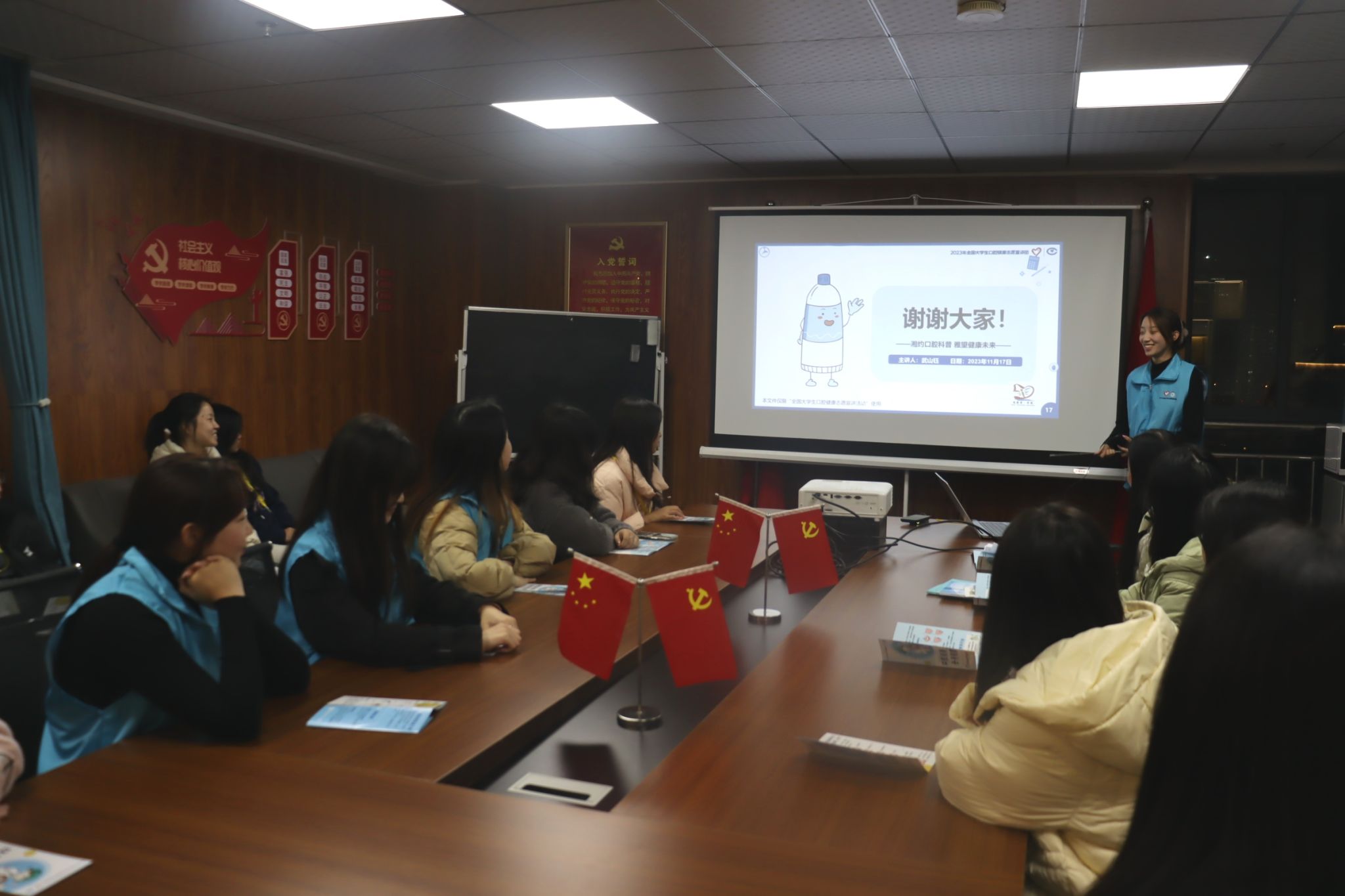 11月17日晚上18:00,beat365外国语学院“语”牙牙保卫队在综合楼1102成功开展第五次口腔知识宣讲会,参与此次宣讲会的成员包括“语”牙牙保卫队全队成员和外国语学院自律委员会楼层长,会议由成员武山钰主持。