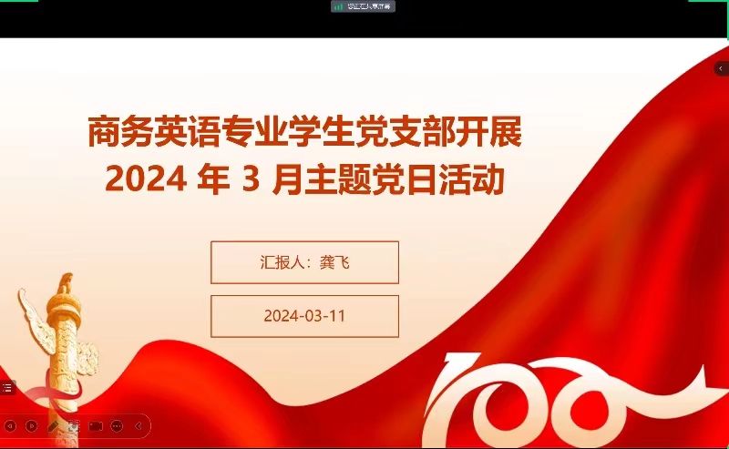 3月11日下午18时30分,外国语学院商务英语专业学生党支部全体成员于六号楼辅导员社区开展了3月主题党日活动线上线下同步会议。