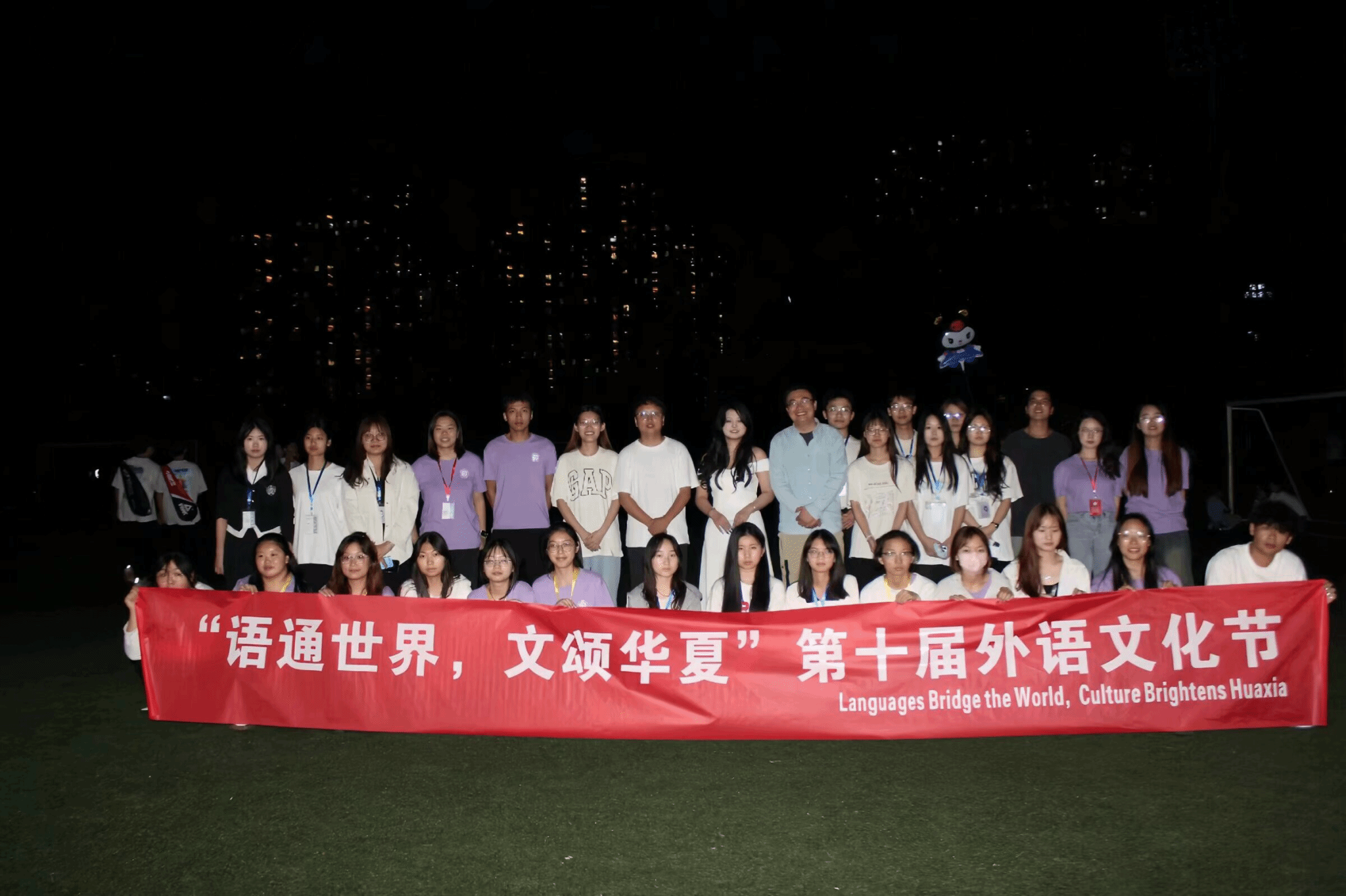 为强化外语特色,培养学生的创新精神、实践能力和外语综合作用能力,丰富校园文化生活,我院于3月31日晚19:00在操场顺利举办了外语文化节开幕式。此次活动由英语1219杨子怡主持,参加此次活动的有外国语学院副院长曹勇波,学工办主任杨洋老师,党总支组织员陈卓老师,团总支书记杨森老师,团总支副书记、学生会指导老师贾佳老师,全校同学们的积极参与。