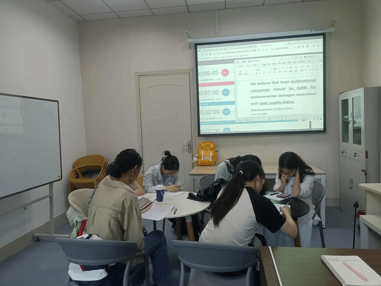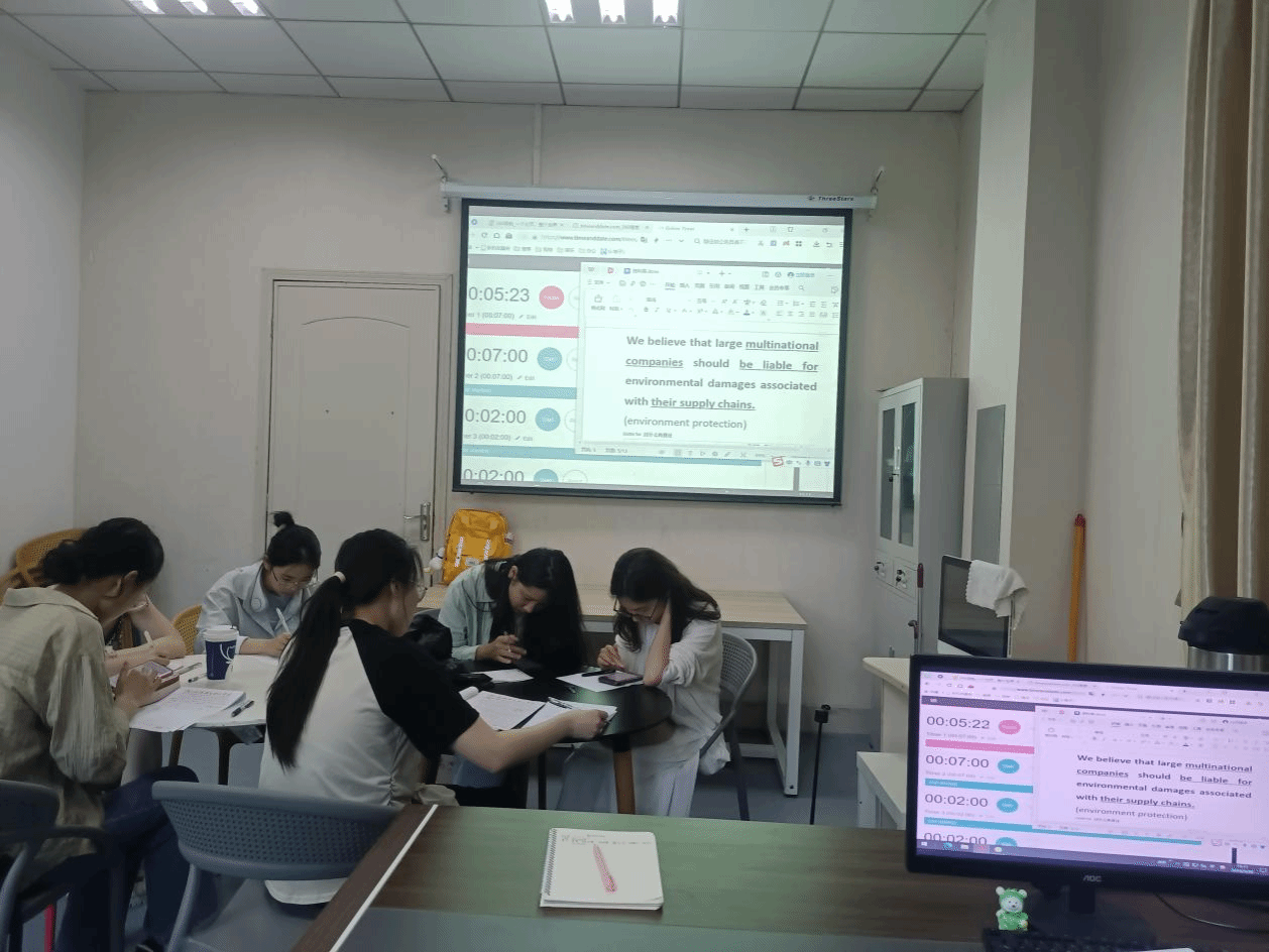 辩论的正方代表认为,根据国际法和许多国家的国内法,企业有义务确保其运营和供应链活动不违反环境保护法规。这表明企业有相关的法律责任原则明确规定企业责任和义务或者供应链管理责任。不仅从跨国公司企业的角度思考,而且从消费者的群体入手,讲解如果大型跨国公司无法证明其供应链的环境合规性,可能会失去消费者的信任和支持,从而影响其品牌形象和市场地位,并且举了苹果公司的供应链环保实践例子证明其合理性。辩论反方认为跨国公司也需要生存,不应在整个生产交易过程中要求跨国公司如此严苛追求环境保护,更多的是跨国公司应该考虑生存问题和发展问题,之后才能谈及可持续发展。大型跨国公司在供应链中环境损害责任的承担情况是复杂且不尽一致的。实际操作中仍存在不少挑战。例如,由于法律框架和监管力度的差异,跨国公司在不同国家和地区的责任界定和执行情况也大不相同等难题。以此进行了长达四十分钟的英语辩论,辩论训练到此就结束了。