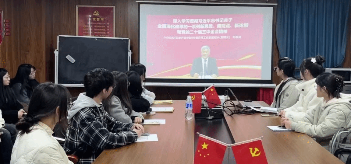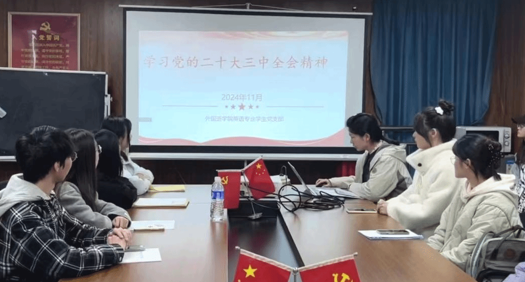 11月23日中午12时30分,外国语学院英语专业学生党支部于综合楼1102开展了“学习党的二十届三中全会精神”主题党日的会议。会议由英语专业学生党支部书记郭晨艳主持,英语专业学生党支部全体成员参会。