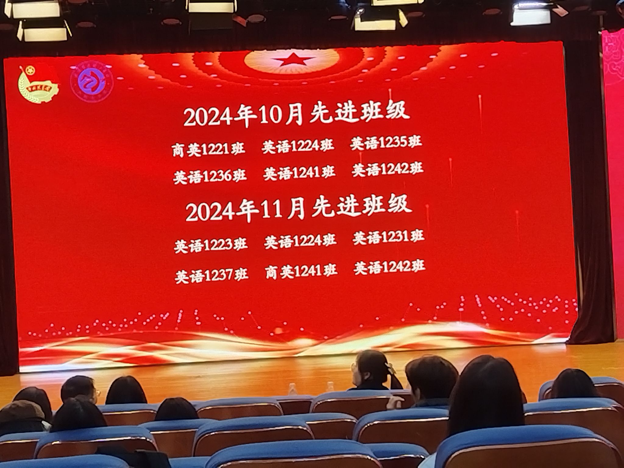 在 2024 年 12 月 9 日的基层团组织培训中,一则喜讯振奋人心:英语教育 1242 班在 10 月和 11 月的三风建设评比中,凭借卓越表现两次荣获优秀先进班集体称号,成为校园班级建设的闪耀典范。
