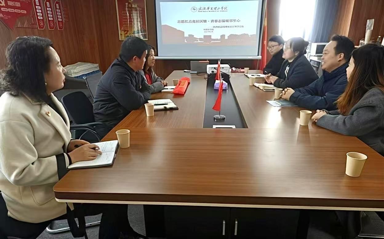 为进一步深化校社合作,回顾过往成果并展望未来发展,2025年2月24日上午10点,一场意义非凡的交流座谈会在综合楼1102会议室举行。园博南社区书记郑圆圆、孙璐、妇联书记徐阳霞莅临,与校团委书记潘晶、外国语学院党总支副书记马勇、学工办主任陈卓、团总支书记王欣佳齐聚一堂,共同围绕校社合作展开深入探讨。