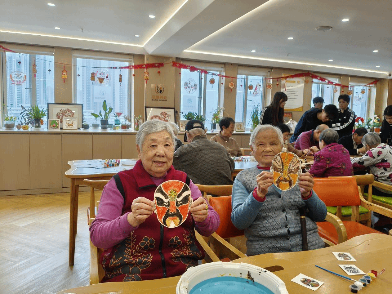随后,志愿者们拿出提前准备好的工具,带领老人们制作脸谱。在制作过程中,志愿者们悉心指导,尽管老人们学习速度较慢,但在志愿者们的鼓励下,他们积极尝试。老人们认真调配颜色,大胆组合色彩,一笔一划仔细勾勒,每一个笔触都饱含着对中国传统文化的热爱。最终,老人们创作出了众多色彩斑斓的脸谱,红色脸谱代表忠义,黑色脸谱彰显刚正,绿色脸谱体现直爽,各具特色。