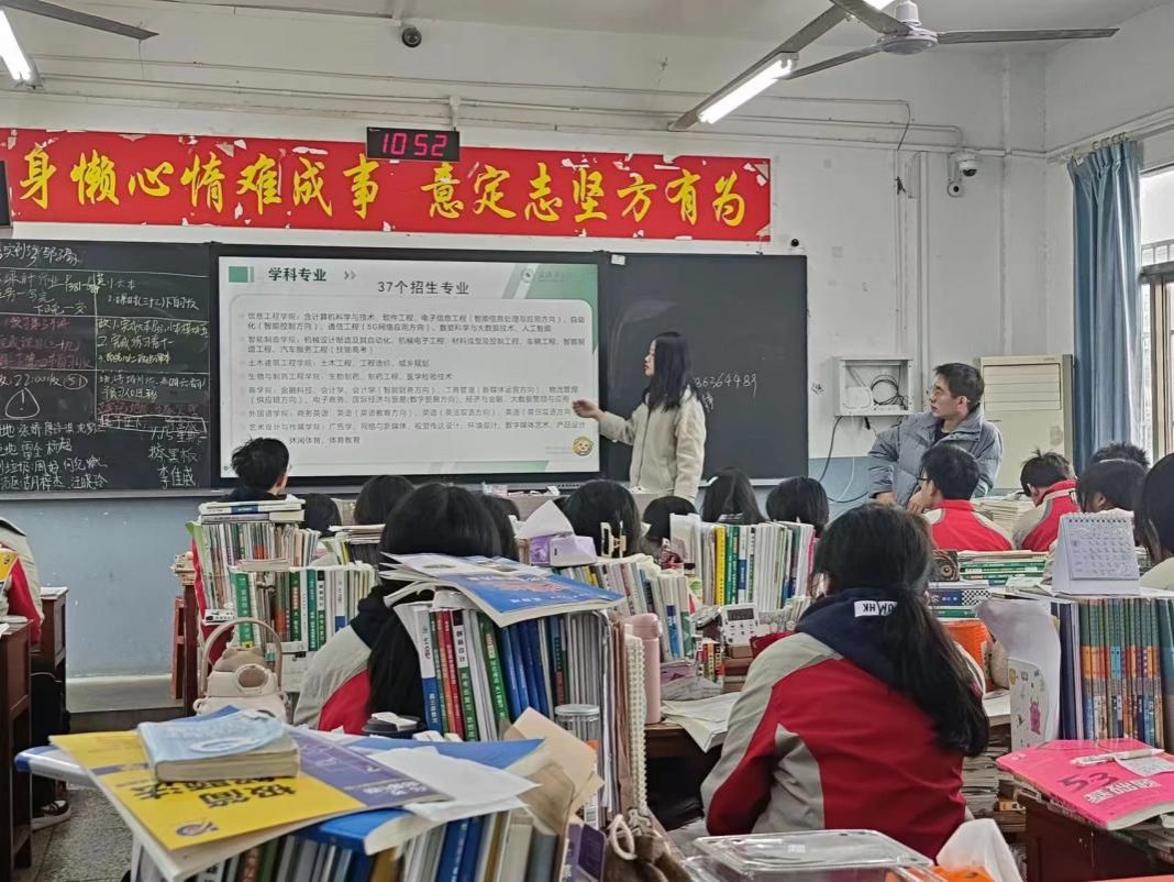 为加强招生宣传,保持大学和高中师生的紧密联系,锻炼大学生的实践能力,利用寒假在高中母校开展宣讲活动,为学弟学妹们讲述我们的大学,分享自己的大学生活,鼓励正在奋力备考的同学们砥砺前行。外国语学院商英1231陈怡静于1月15日在崇阳县众望高中进行宣讲。