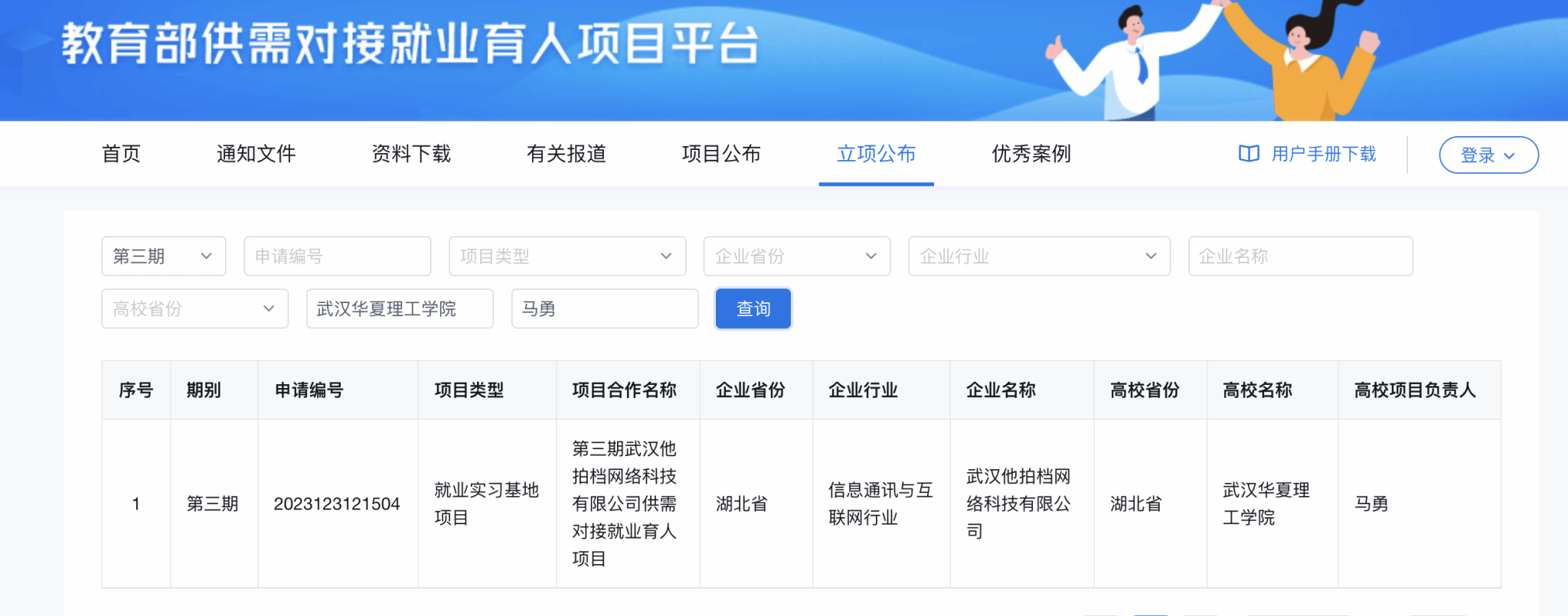 2024年6月14日,经过教育部高校学生司(高校毕业生就业服务司)严格的申报和审核流程,外国语学院成功入选教育部第三期供需对接就业育人项目立项名单,在就业实习基地项目1项中获批立项。