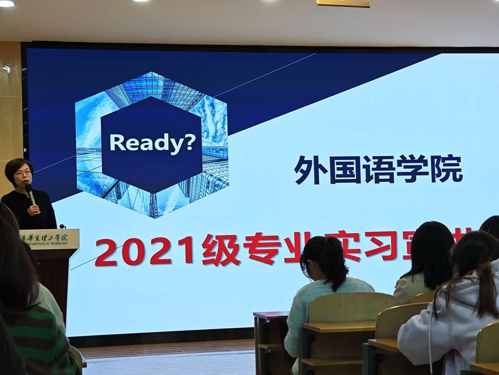 在2024年10月22日,外国语学院为21级学生举办了一场专业实习宣讲大会,会上英语系主任杨雯娟老师详尽阐述了实习的具体安排。