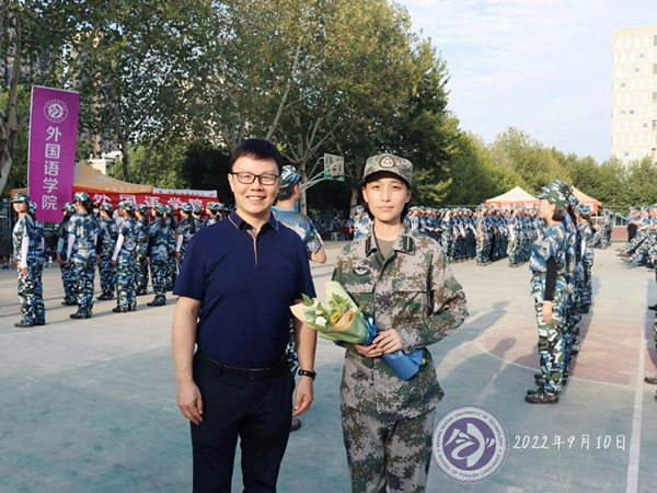 外国语学院院长刘沛带领马勇书记、党总支秘书陈卓以及学工办主任杨洋前往训练场,亲切的问候了参加军训的全体外院新生和教官,并给大家送上了中秋的祝福。