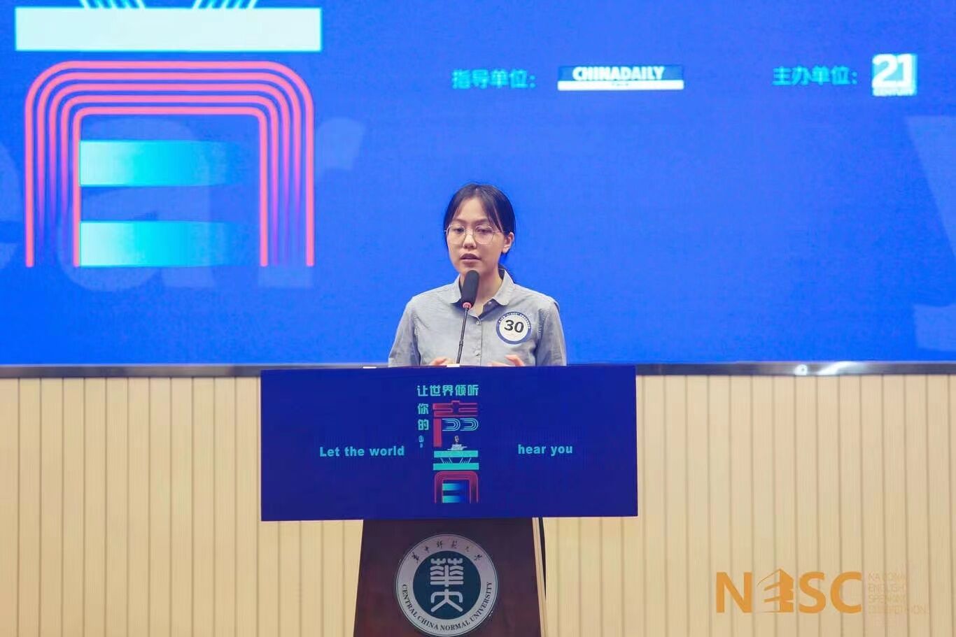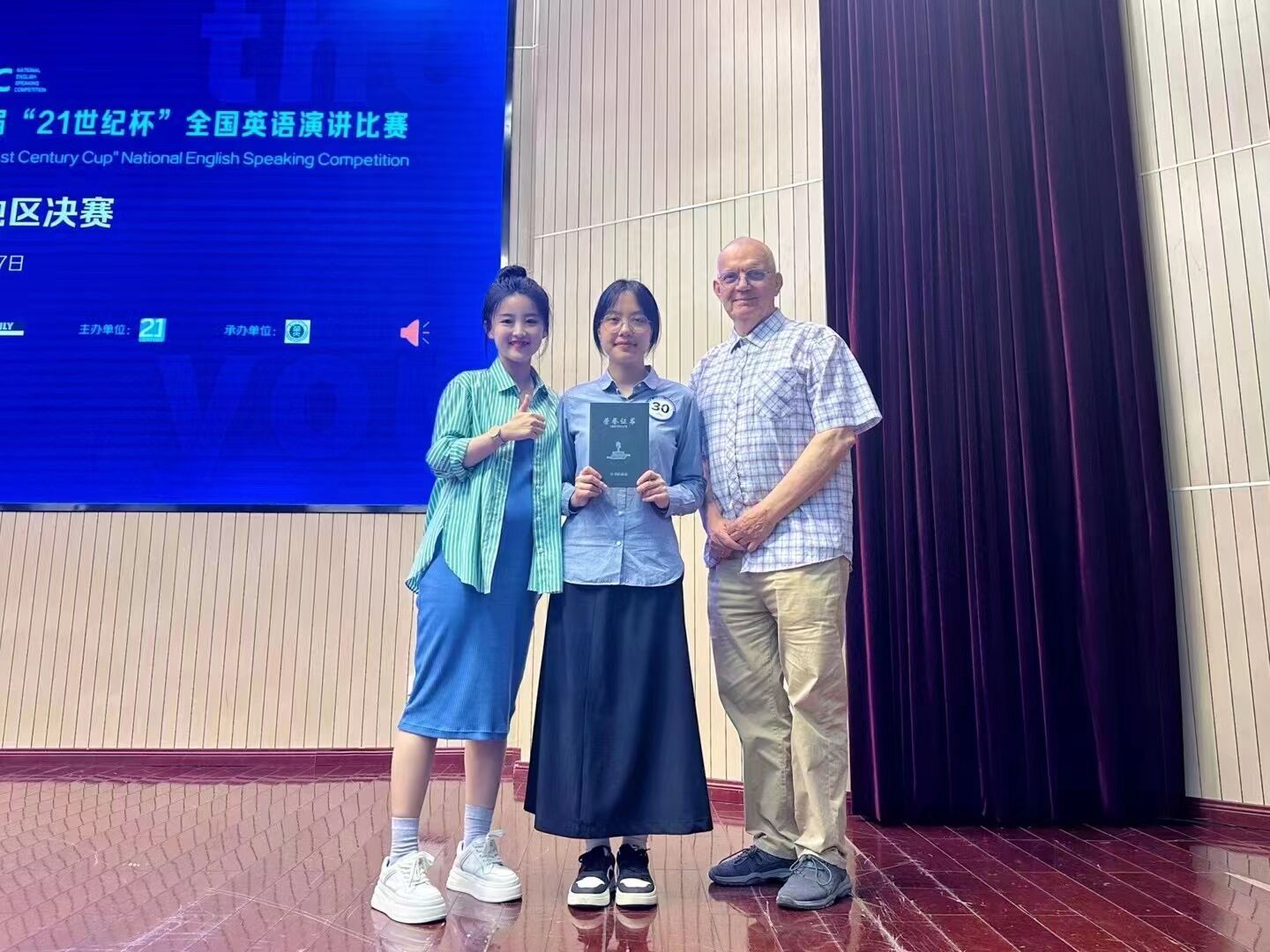 5月27日,来自商英1212班的刘芷吟同学在指导老师张娱、外教Dirk的带领下,参加了由华中师范大学举办的“21世界杯”全国英语演讲比赛湖北省决赛,与来自湖北省各大高校的选手同台竞争,最终获得湖北省三等奖。