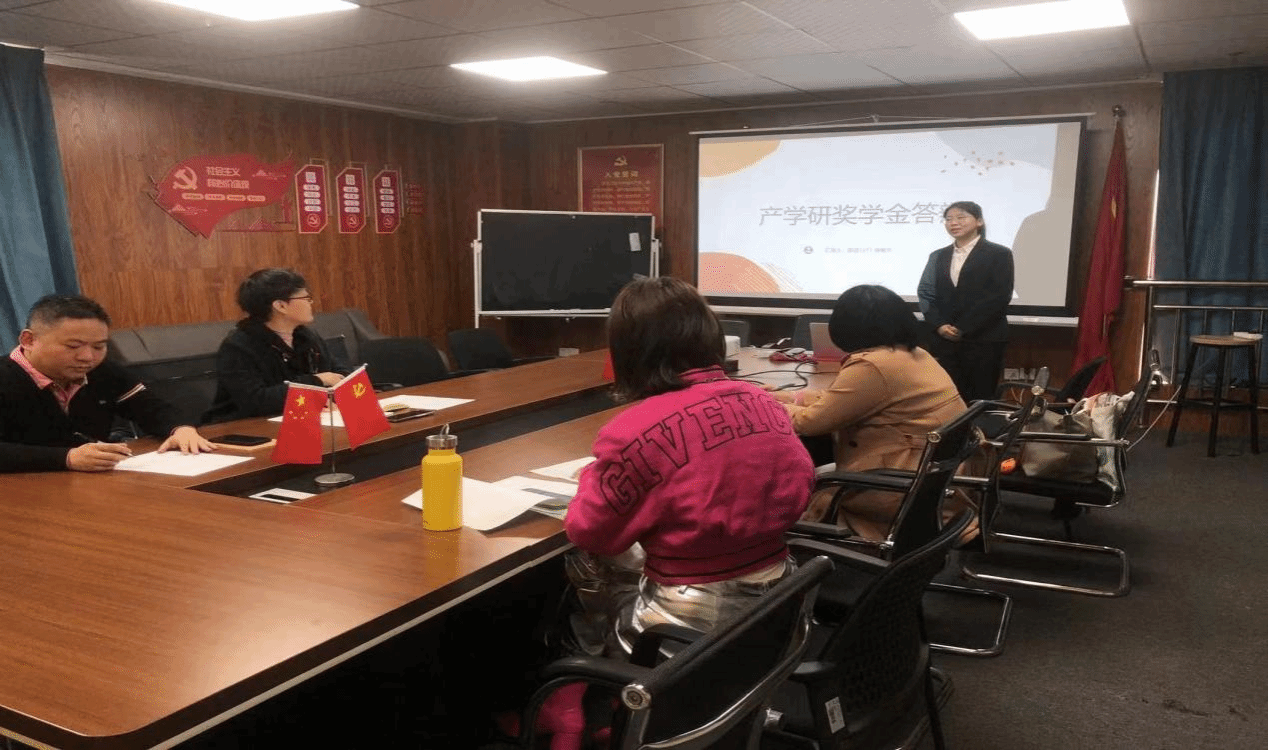 2024年3月20日中午12:40,外国语学院在综合楼1102会议室举行“外国语学院2023年学生产学研奖学金答辩”会议,评审老师是白燕琴院长和曹勇波院长,吴诗雨老师和陈晶老师,答辩学生分别是来自英语1211班的语言教育工作室的喻春兰,华夏文旅工作室的英语1204佘珍喜和英语1221班的夏红云。