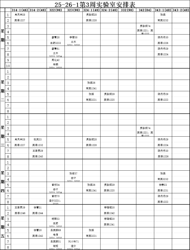 【实验教学】25-26-1第3周实验室安排表