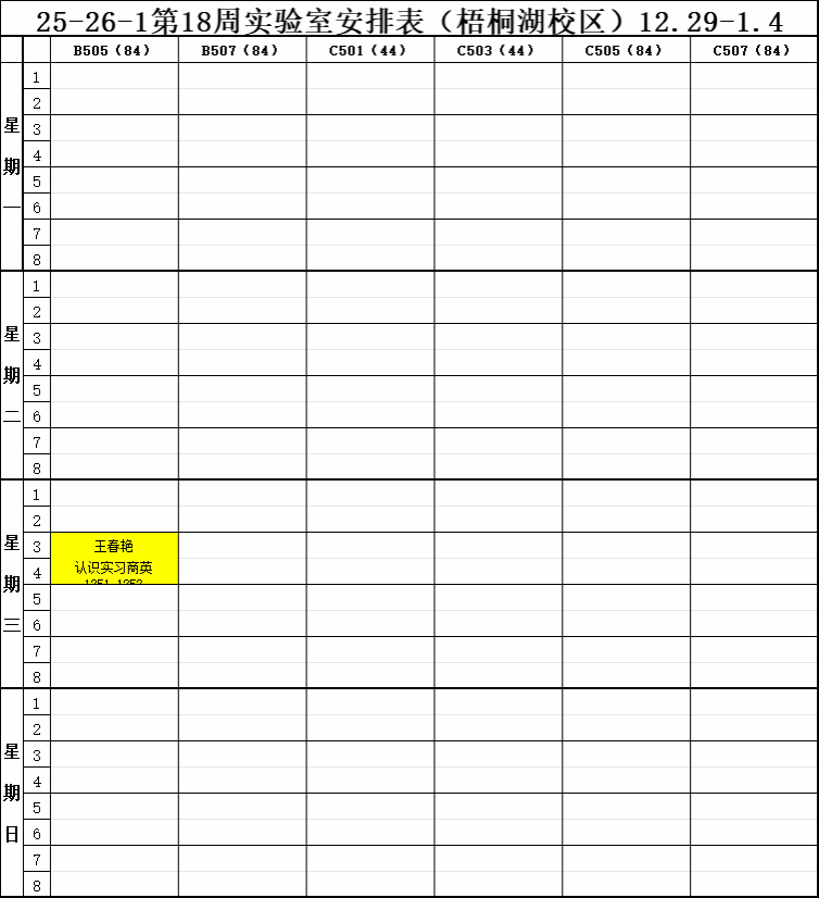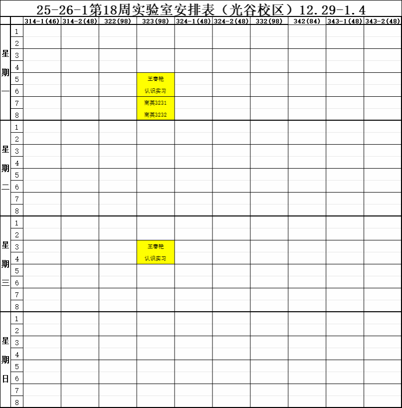 【实验教学】25-26-1学期第18周实验室安排表