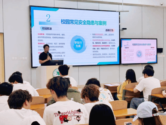 活动伊始,辅导员们聚焦校园安全中的重点问题,深入剖析了校园违规行为这一突出隐患。诸如不遵守校规校纪、在校园内从事危险活动等行为,往往看似微不足道,实则可能引发严重后果,威胁师生人身与财产安全。老师们通过深入浅出的讲解,引导同学们增强规则意识,严格遵守学校的各项规章制度,从源头上防范安全隐患的发生。