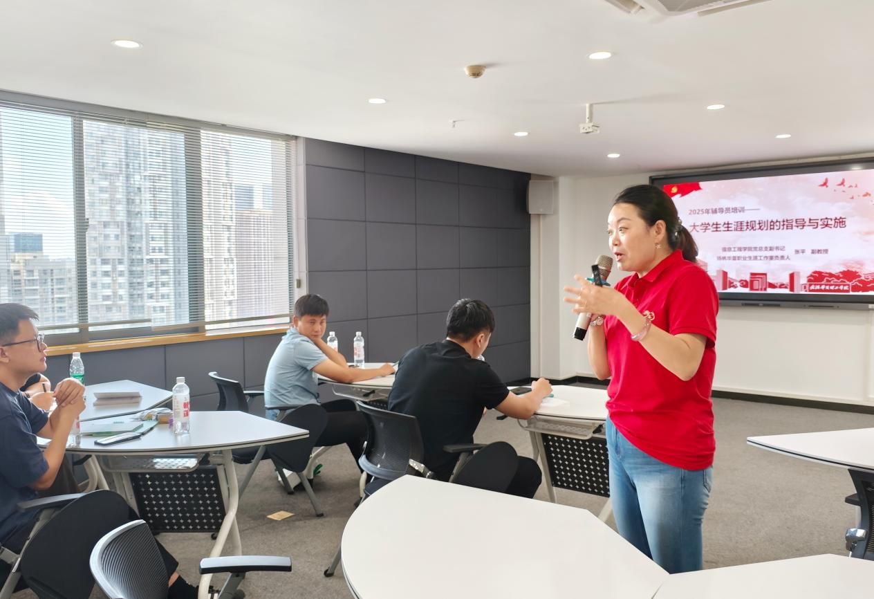 随后,信息工程学院张平书记带来“大学生职业生涯规划的指导与实施策略”专题培训。他从生涯发展理论的高站位切入,深入剖析职业规划与学业指导、就业服务之间的紧密内在关联。结合学校“职业规划 + 就业指导”双轨育人路径,张平书记提出“大一探索兴趣、大二聚焦能力、大三对接行业、大四精准冲刺”的分阶段职业指导方案,为辅导员构建系统化、科学化的职业育人框架提供了清晰指引。