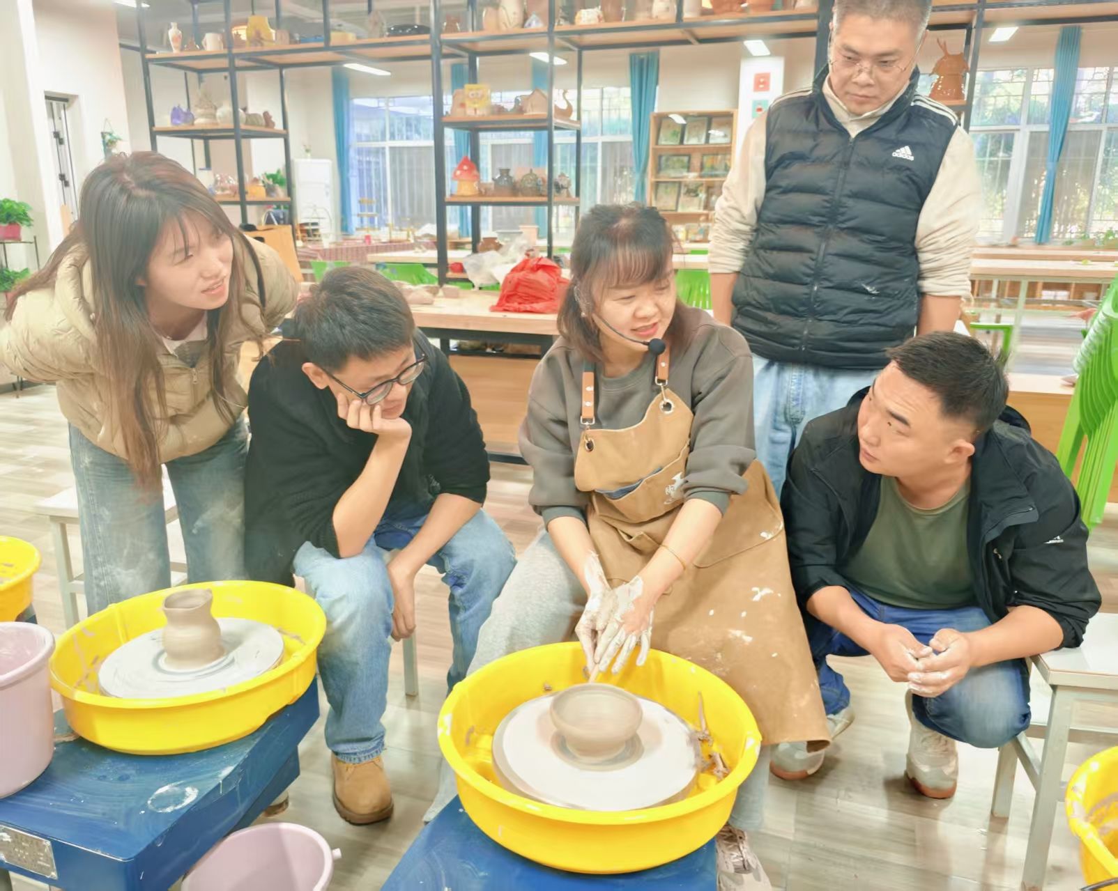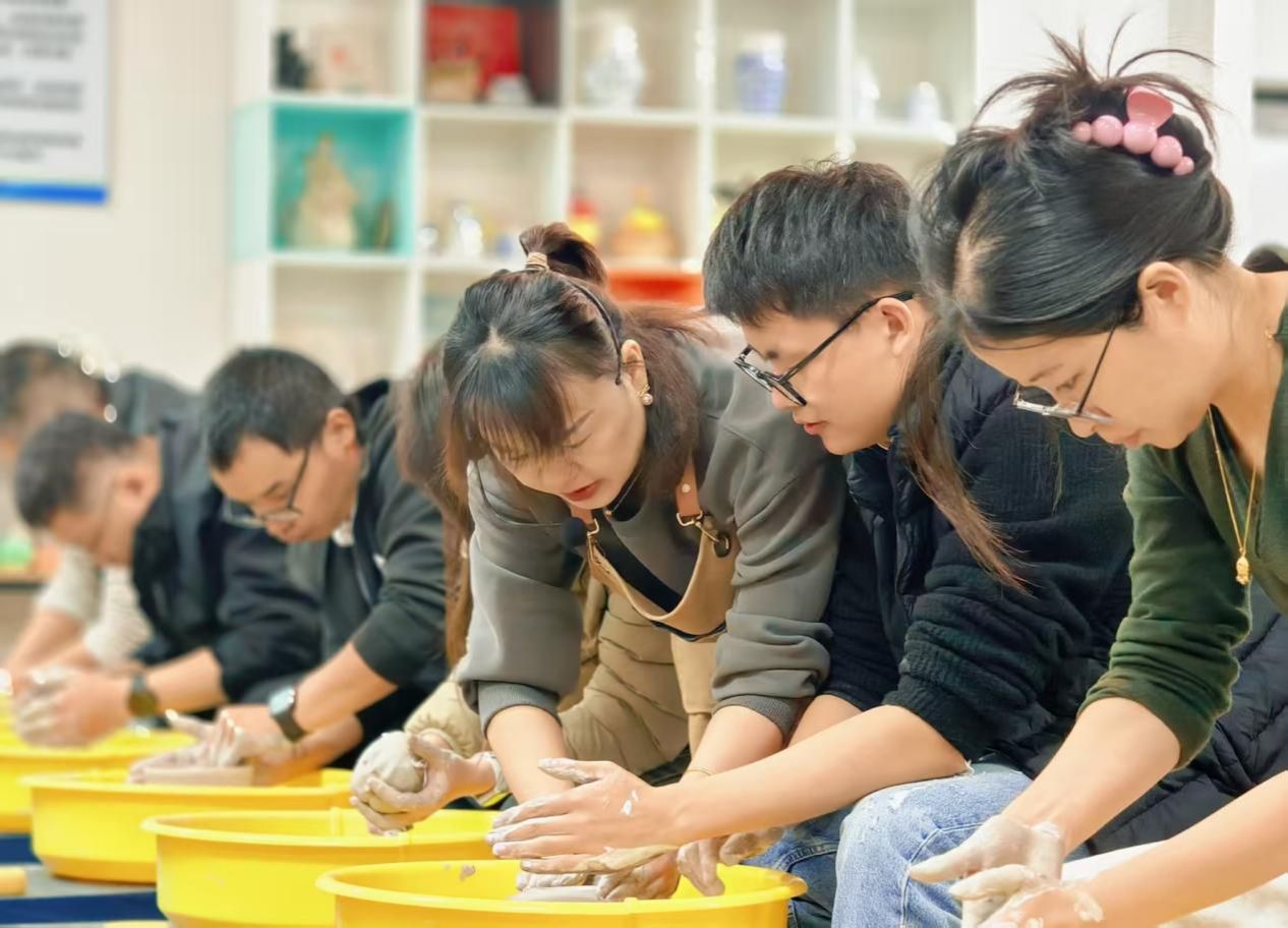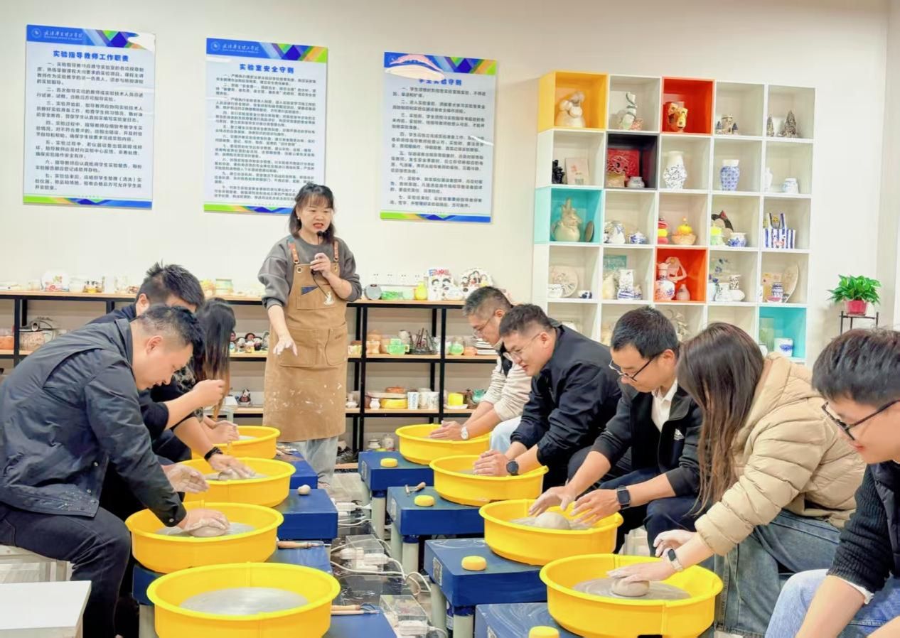 活动第二部分充满趣味与活力。艺术设计与传媒学院王琳老师带领辅导员们开展陶艺实践。在王老师的指导下,辅导员们纷纷动手,从揉泥、拉坯到塑形,每一步都认真尝试。过程中,大家相互协作、交流技巧,原本专注于各自工作的辅导员们,在陶艺制作中逐渐熟悉,团队默契不断提升。