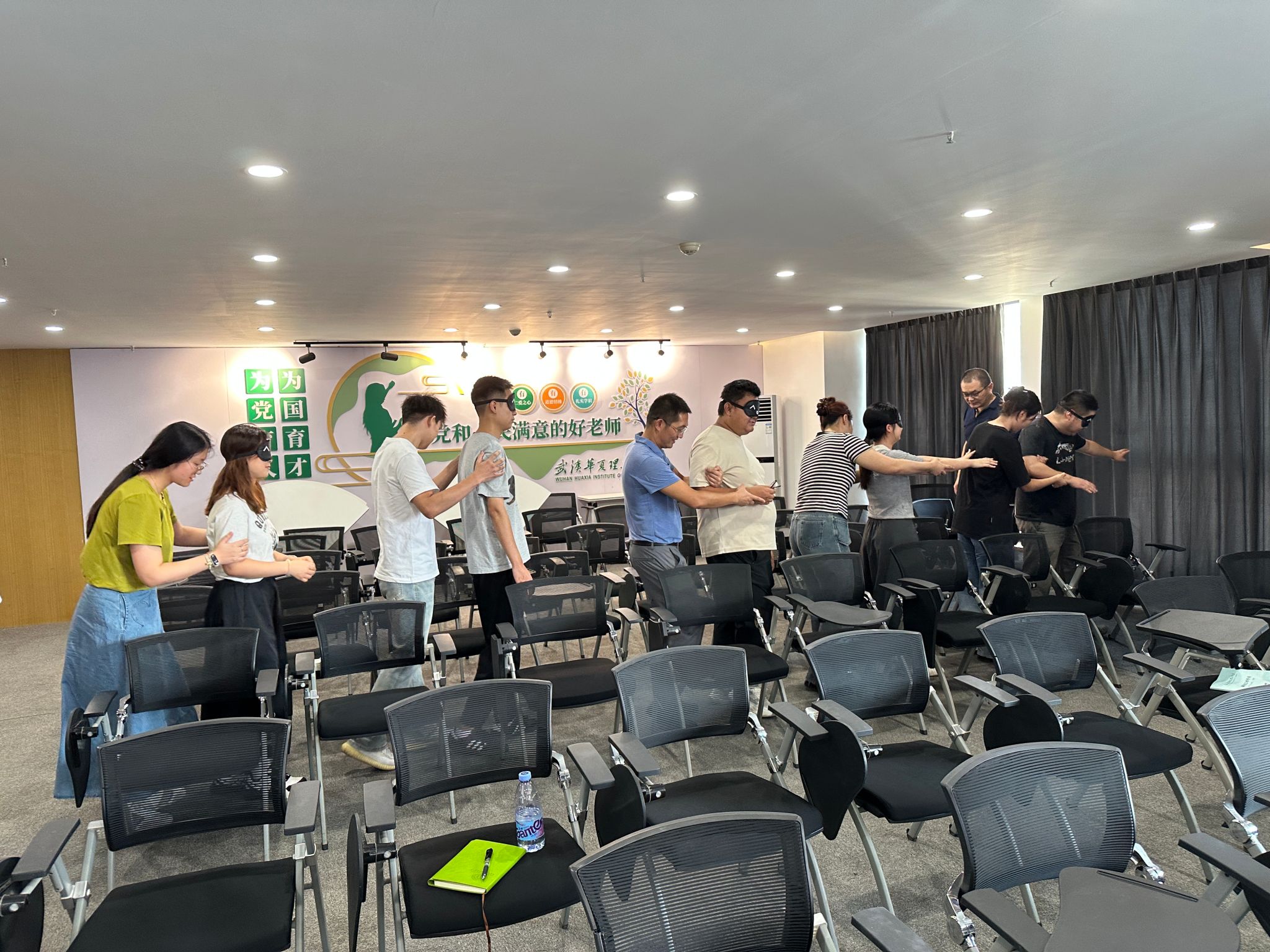 会议首项议程为集体备课环节。韩志来主任以“沉浸式体验”为切入点,带领团队开展热身活动示范,通过“放松按摩”游戏迅速活跃现场氛围。随后,他详细解读实践课分组原则,按照不同人数、沟通需求进行班级分组。在主体活动“盲行”演示中,韩主任邀请教师代表扮演“引导者”与“盲者”,通过蒙眼行走、信任对话等环节,直观呈现课程设计意图。参会教师围绕场地安全、突发干预等细节展开研讨,为大学生心理健康课程的有序开展提供了保障。