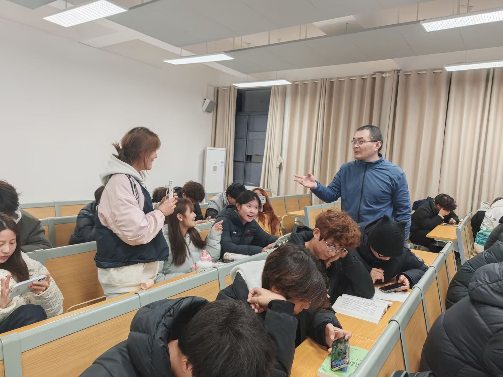 示范课环节中,钟沁玥老师于第14周周一为医检专业学生带来《大学生人际交往及寝室关系处理》一课,通过“情景再现”角色扮演活动,引导学生现场模拟寝室矛盾场景,共同探讨沟通技巧与解决策略,在互动中学习如何营造和谐集体氛围。龚飞老师在第15周为英语专业学生讲授《大学生情绪管理与压力应对》,课程以“情绪卡片”游戏导入,邀请学生分享近期情绪体验,并结合呼吸放松训练、正念冥想等体验环节,帮助学生认识情绪、掌握科学减压方法。