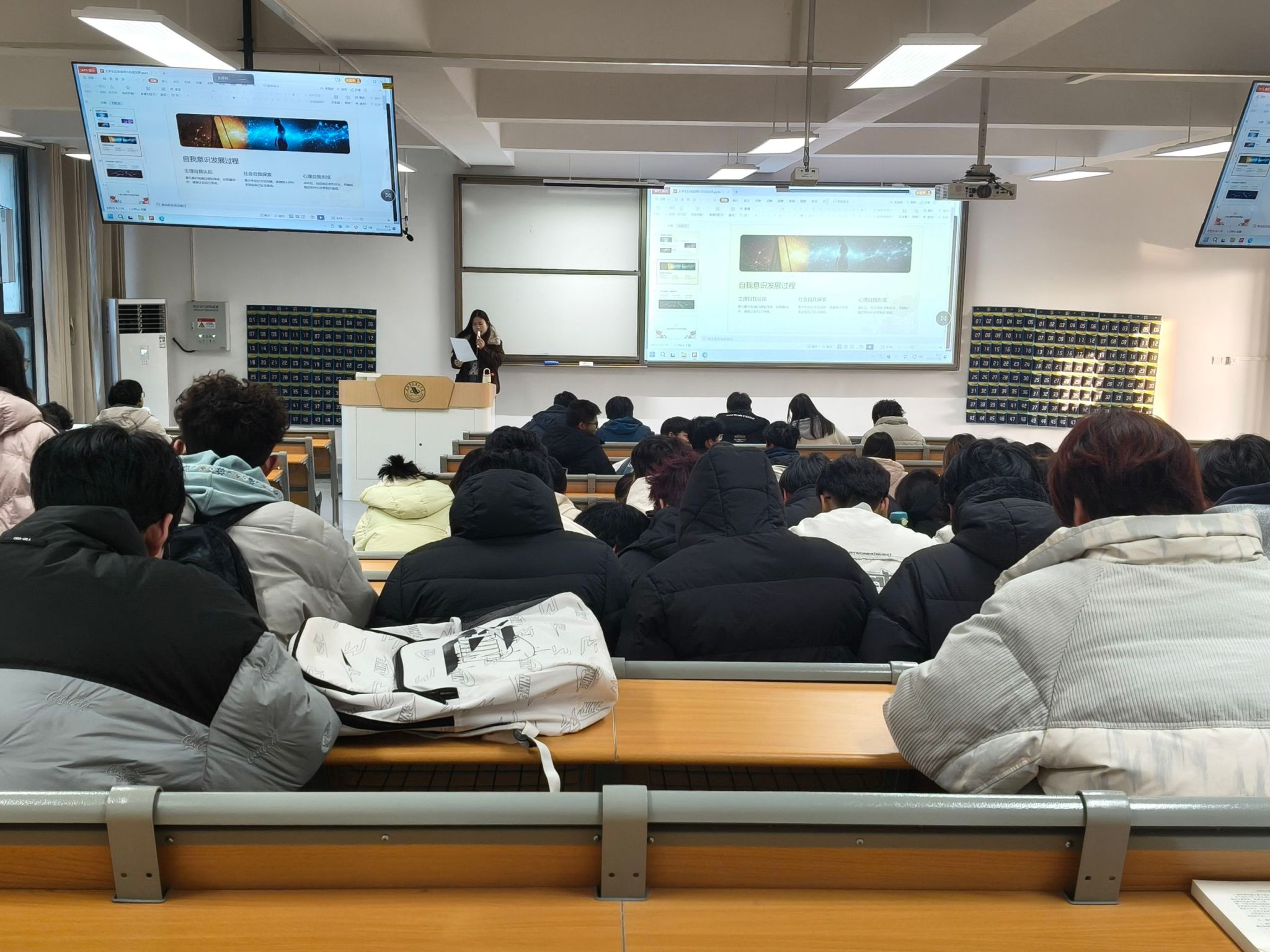 公开课方面,课程覆盖更多学院与专业,互动环节尤为突出。毛雨晴老师为人工智能、软件专业学生讲授《大学生情绪管理与压力应对》时,组织学生进行“压力圈图”绘制与分享,并带领集体体验“蝴蝶拍”安抚技术,增强课堂的参与感与实用性。