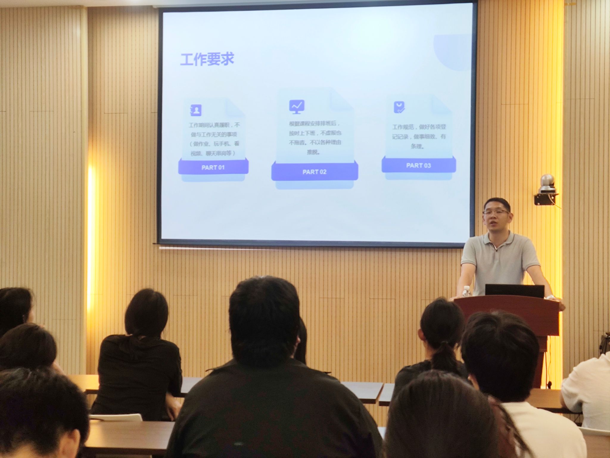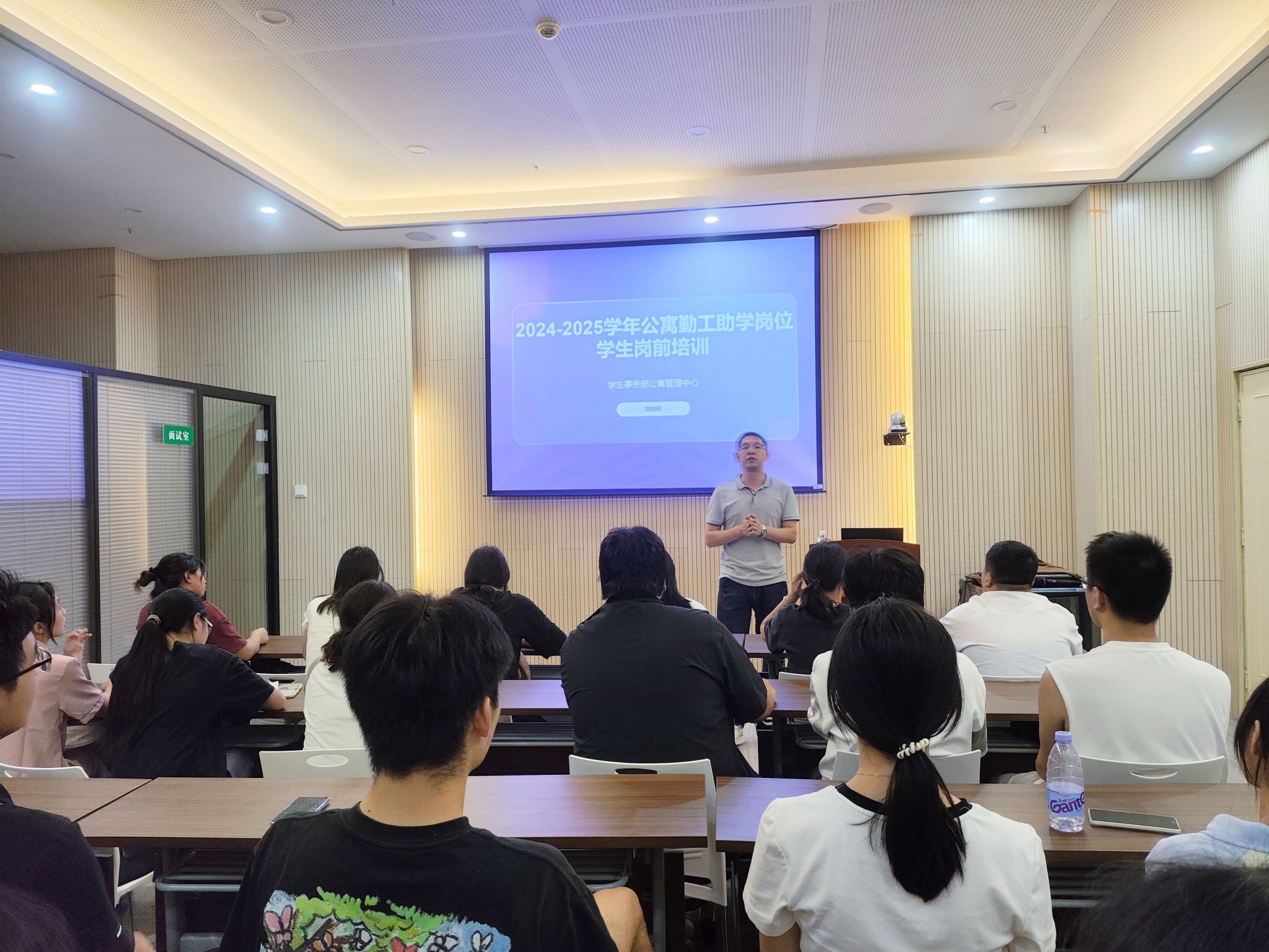 为了进一步发挥新时期学校勤工助学工作的劳动育人功能,提升勤工助学工作服务水平,增强勤工助学生劳动技能,引导同学们树立正确的劳动观与自立自强意识,9月26日,学校公寓管理办公室在综合楼一楼多功能会议室举行本学期勤工助学岗位学生素质培训会,来自各楼栋管理处的40多名勤工助学岗位学生参加了本次培训。