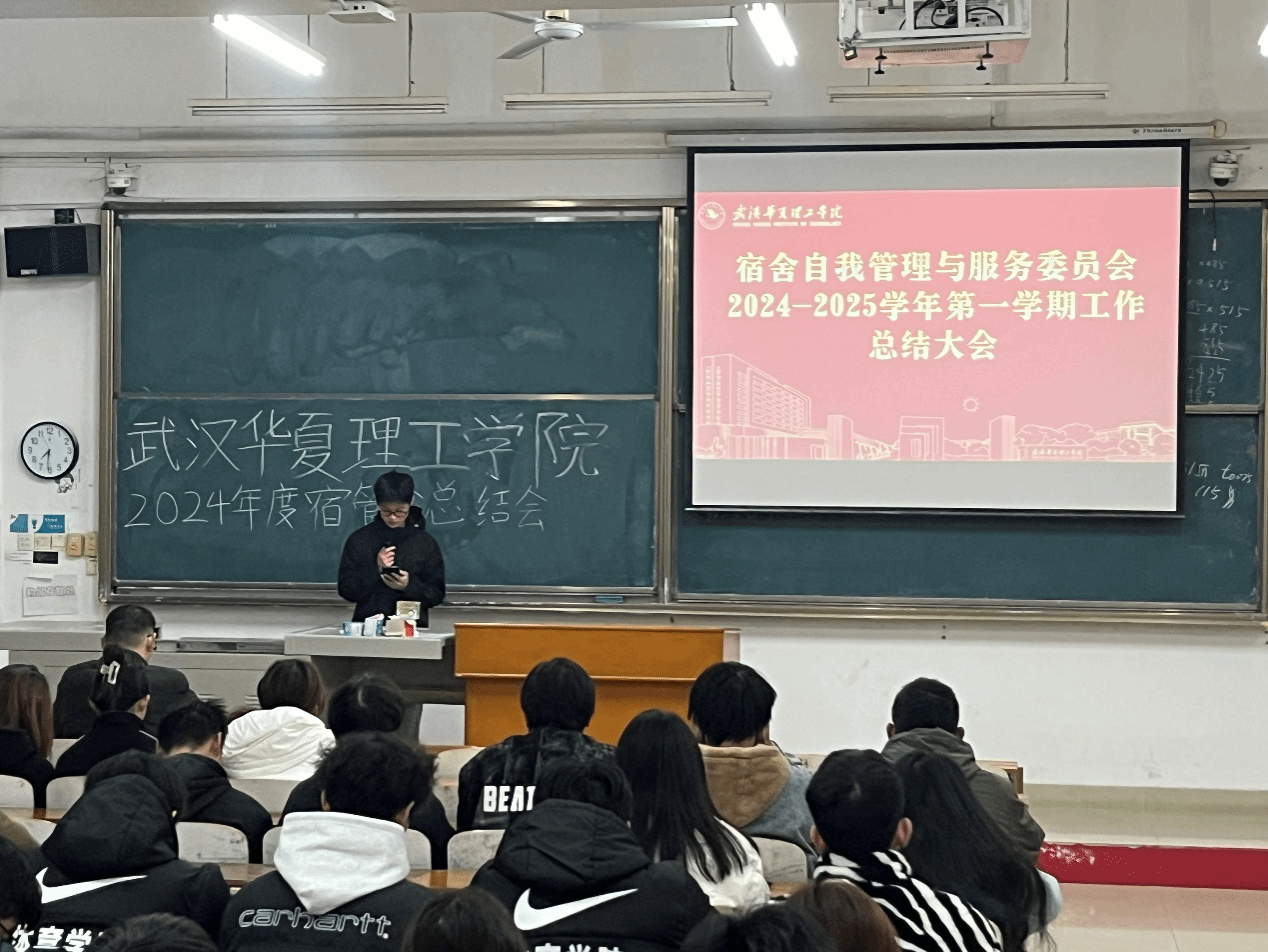 大会伊始,宿管会负责人黄楷洪登台,以详实的数据和生动的案例,对过去一学期的工作进行全面梳理。从日常的卫生检查、安全巡视,到组织宿舍文化活动、协调同学间矛盾,一项项工作成果历历在目。在卫生检查方面,通过严格执行标准,宿舍整体整洁度较以往有显著提升,优秀宿舍比例达到 62.32%;纪律维护上,宿舍违禁电器使用及晚归现象不断减少,为同学们的生活和学习营造出更为安全、干净的休息环境。