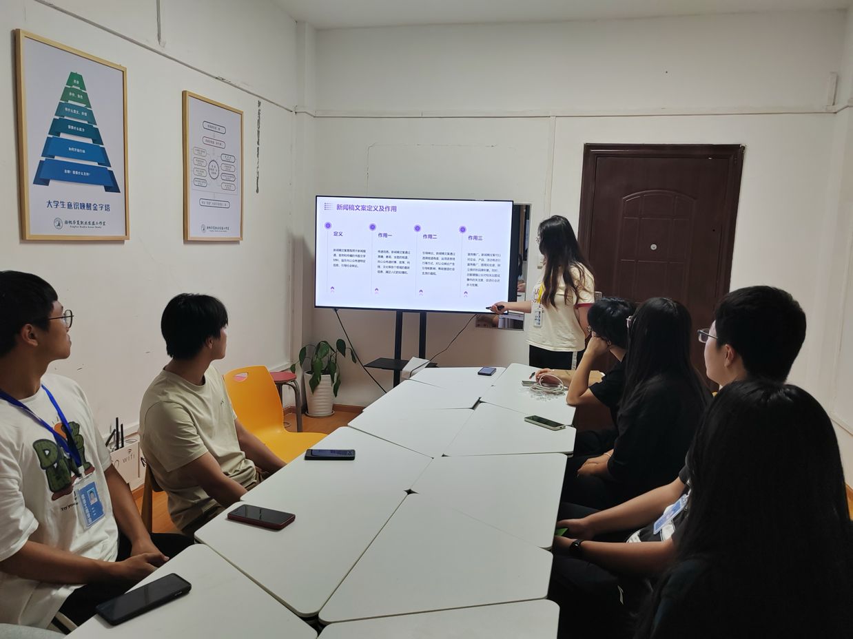 我院学生会宣传部于2024年6月18号在beat365官方网站“扬帆华夏”职业生涯工作室202召开了一场关于“新闻稿文案培养”的培训会议。本次会议旨在培养部员们敏锐的洞察力,强化部员们的文字表达能力,以及让部员们掌握快速拍摄的方法,清晰呈现活动现场。本次会议由宣传部副部长陈静主持,全体部员参加。