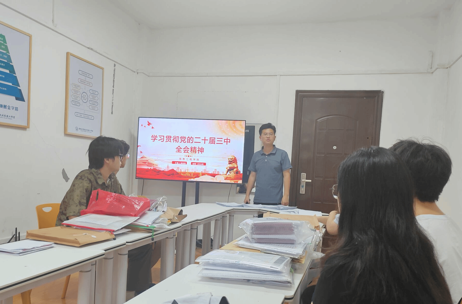 2024年9月12日,信息工程学院学生第三党支部召开专题学习会,进一步深入学习贯彻党的二十届三中全会精神。学生三支部书记陈远扬、支部委员万王旋、三支部入党积极分子和学生干部参加会议。