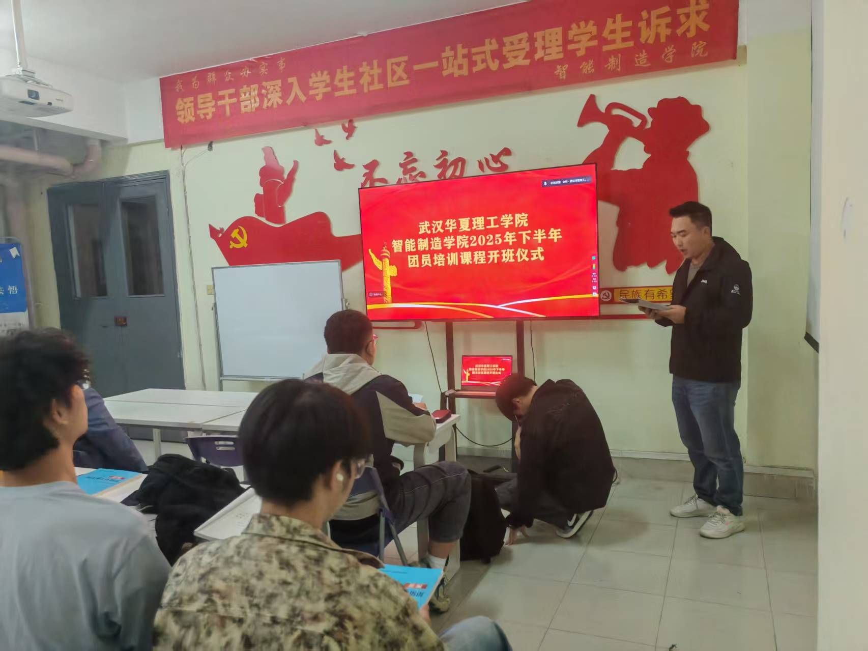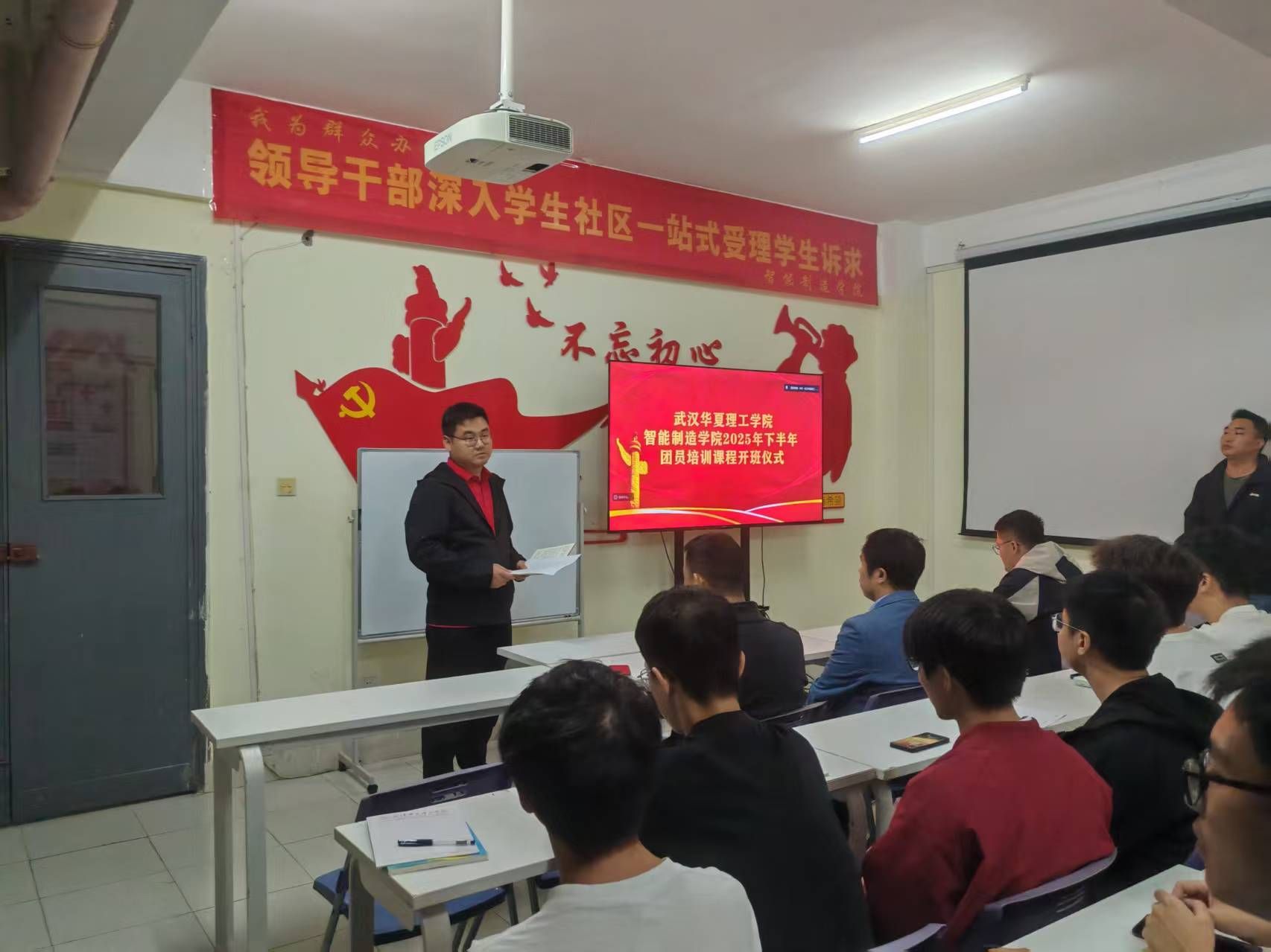 为加强团员思想引领,提升团员综合素质,10月13日晚,智能制造学院在二号楼学生社区隆重举行团员集体学习开班仪式。院党总支副书记靳路民、院党总支组织员祝炜黎、团总支书记陈张柱、团总支副书记周立华及马文明出席本次仪式,学院全体团员参加。