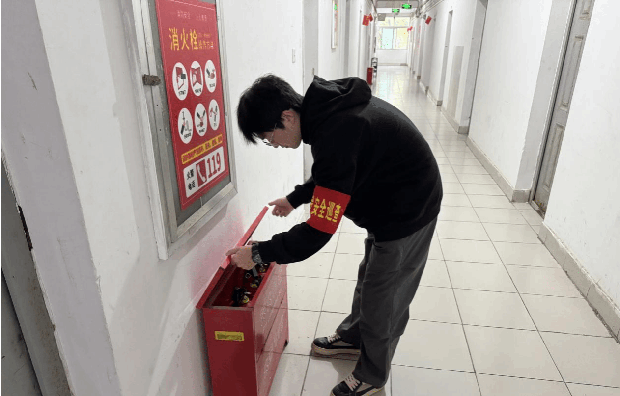 此次行动中,同学们提前学习《校园消防安全管理规范》,明确消防设施检查要点与通道安全标准,以专业姿态开启值班检查工作。