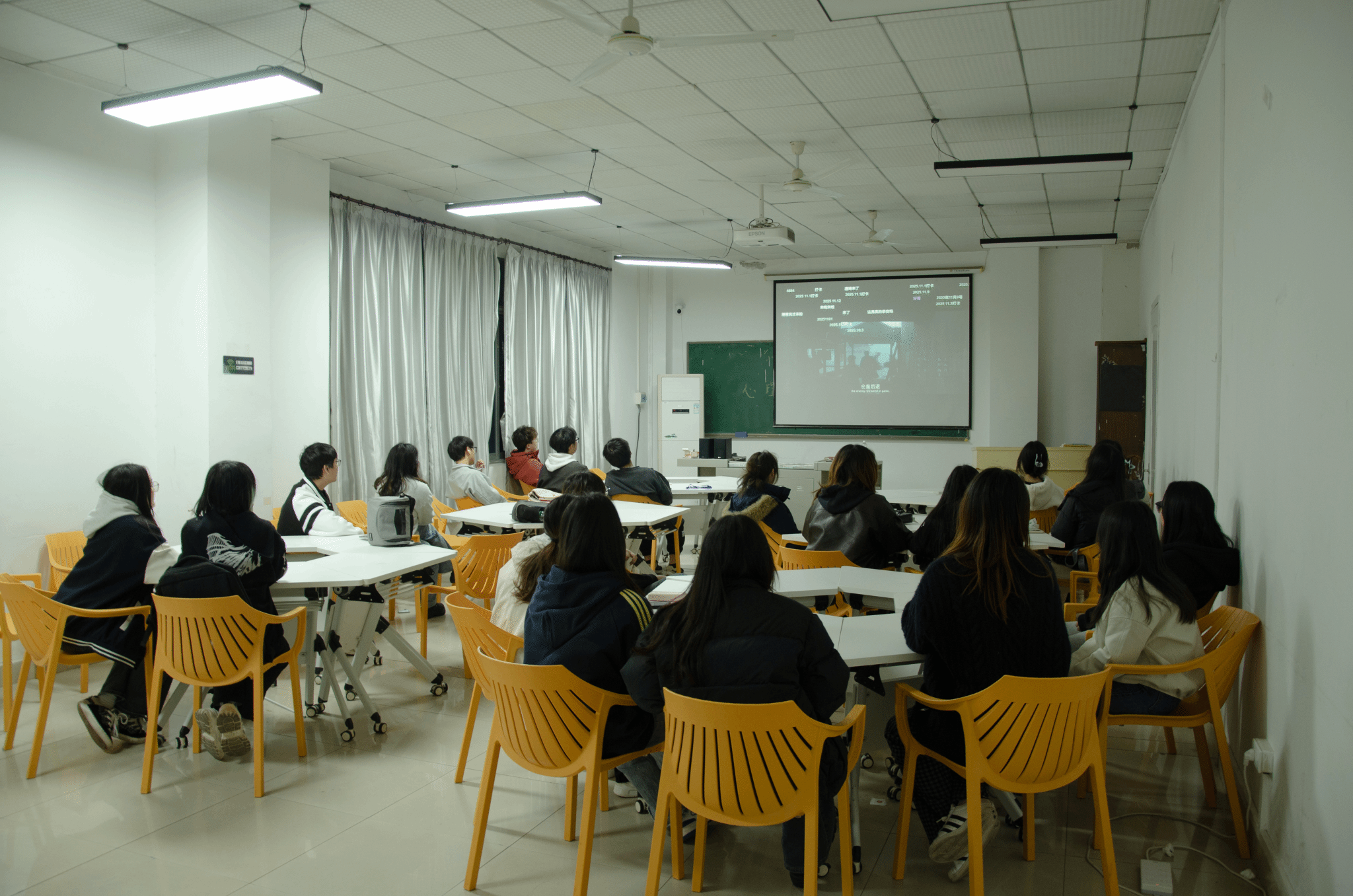 活动当天,工作人员提前抵达现场,有条不紊完成设备调试、现场布置、参与引导等筹备工作。随着同学们陆续入场就座,活动正式拉开帷幕。其细腻真挚的叙事风格、深刻动人的情感表达,迅速将同学们带入剧情,大家沉浸在光影构建的世界里,跟随角色经历感受情绪起伏,在潜移默化中获得心灵的舒缓与治愈。